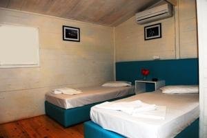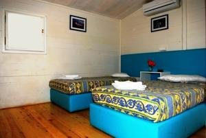 De Paradise Beach Camping ligt op slechts 50 meter van het gouden zand van het beroemde Paradise Beach. De grootste discotheek van het eiland, een self-service restaurant, snackbar en 2 bars staanallemaal op de site. Gasten van het Paradise Beach Camping kunnen ervoor kiezen om in houten bungalow-achtige huizen voor 2 of 3 personen te verblijven. Elke kamer is voorzien van airconditioning met prive-badkamer met douche. Een koelkast is ook inbegrepen. Wi-Fi in de kamers en openbare ruimtes is beschikbaar tegen extra kosten. Het on-site restaurant is de hele dag open en serveert een rijke verscheidenheid aan Griekse en internationale gerechten. De snackbar serveert Griekse Souvlaki, kebab en hamburgers. Van vers gebakken cake en croissants kunt u genieten bij de Croissanterie. De faciliteiten van het volledig georganiseerde camping omvatten ook een 24-uurs meertalige receptie, een rent-a-bike shop, een kleine supermarkt, een boetiek en een internetpunt met pc's. Jetski's, waterfietsen en bananen-boten kunnen gehuurd worden op het watersportcentrum op het strand. Paradise Beach Camping ligt op slechts 5 km van het centrum van Mykonos, de haven en het nachtleven, en 3 km van de internationale luchthaven. Op verzoek wordt een gratis shuttle service aangeboden bij aankomst. Parkeren op het terrein is ook gratis. Check beschikbaarheid en prijzen & boek de Paradise Beach Camping op Mykonos - klik hier. |