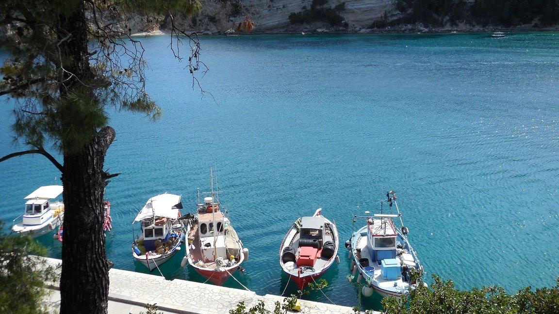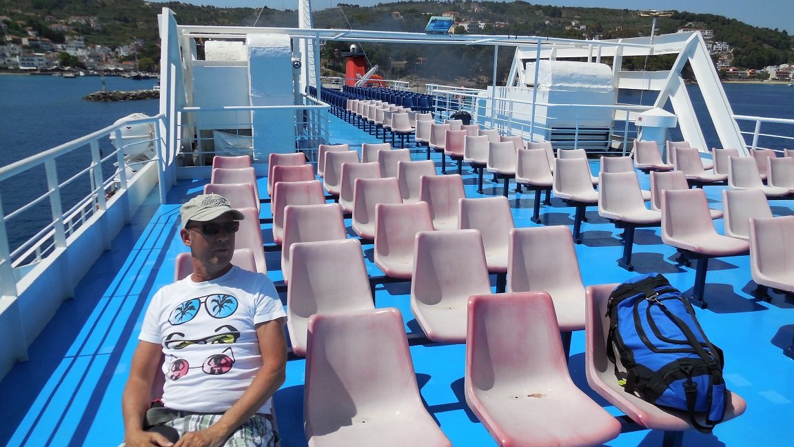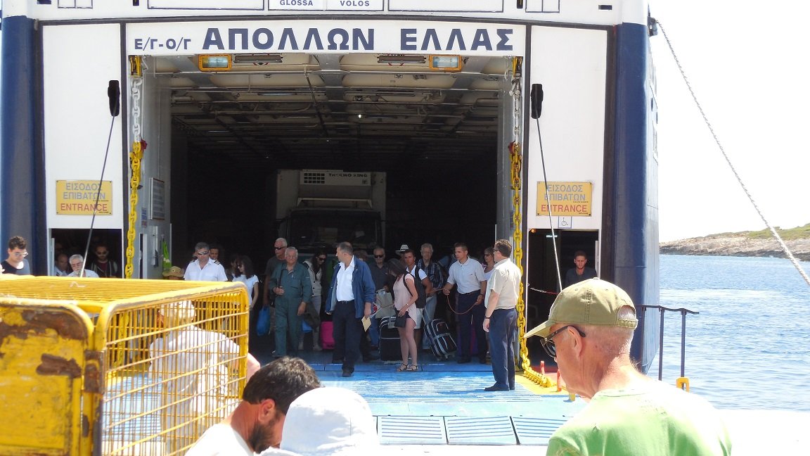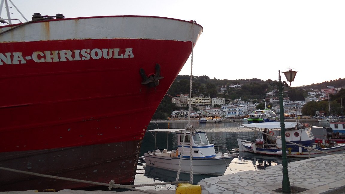Alhoewel de haven en het dorp van Patitiri, waar de veerboten aanleggen, beduidend kleiner is dan Skiathos stad, prefereerde ik het over zijn grotere buurman. De haven is heel knus, met veel bomen en bloemen, en er zijn ook veel mensen die vreemde vogels in een kooitje voor hun huis hebben hangen. De terassen in de haven waren rustig, het eten was er goed, en de mensen erg aardig. Veel verkeer is er niet. Aan de rechterkant van het dorp is een klein keienstrandje, en er zijn een paar straten met aardige winkeltjes, supermarktjes en een bakker. In Patitiri zijn pinautomaten en er is een "Health Centre". Vanaf de kade vertrekken excursiebootjes naar de diverse attracties die Alonissos te bieden heeft, zoals de kustlijn, de blauwe grot, het Marine Park en nabijgelegen eilandjes met stranden, een vuurtoren en een klooster. Wat ook mijn aandacht trok was een grote oude muur in het midden van de haven, die overwoekerd was met bomen en struiken. Je kunt langs de haven lopen of over de pier, maar je kunt ook een trap op om de stad en de haven van bovenaf te bekijken. Mijn vrienden zijn naar de Chora (hoofdstad) gelopen. |