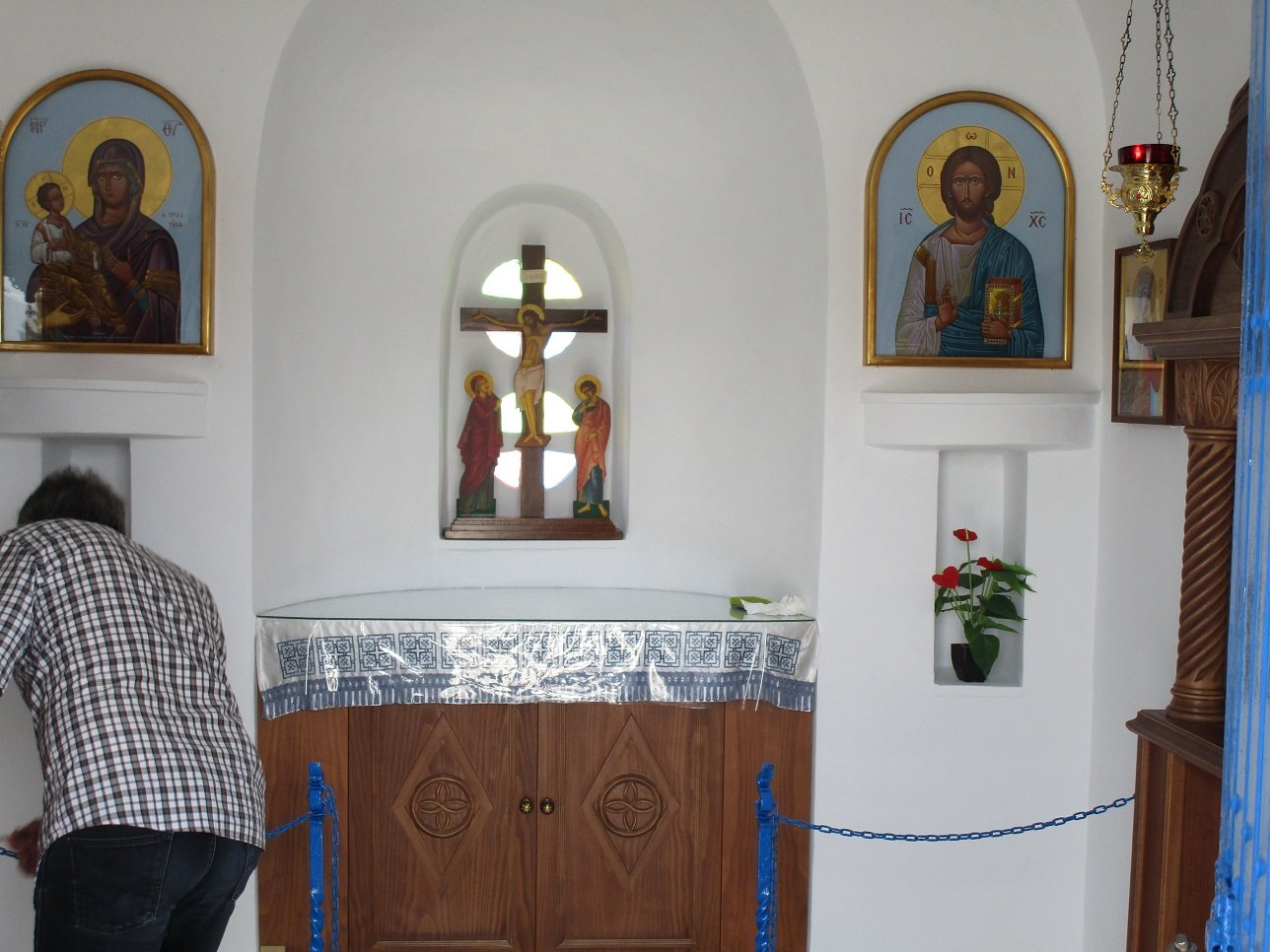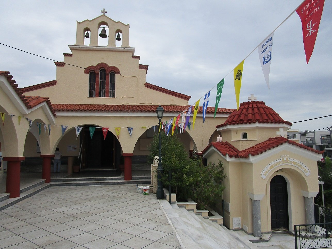 Als je vanaf de straat de trap opklimt kom je uit bij nog een groot plein met zitbankjes en hier is ook de ingang tot de kerk.