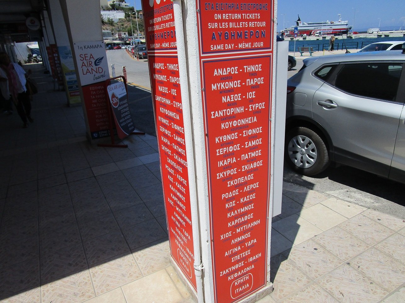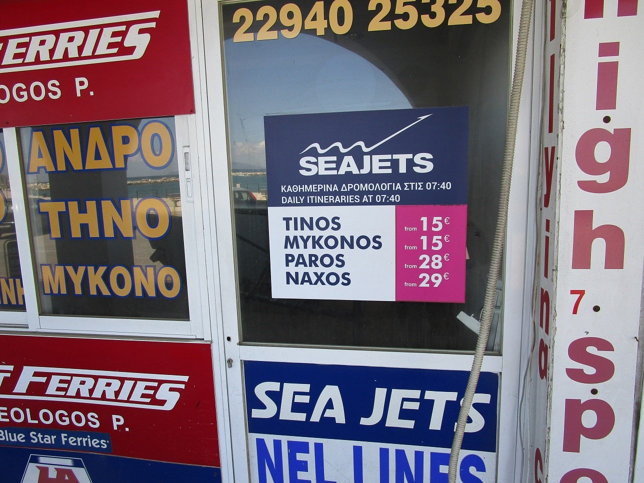 Rafina is een rustig alternatief voor de veel grotere haven Piraeus. De bestemmingen zijn Andros, Tinos, Mykonos, Paros, Naxos, Santorini en Evia. Vanaf Tinos en Mykonos kun je weer een hele hoop andere Cycladen eilanden bereiken. De reis van het vliegveld naar de haven Rafina duurt ongeveer 30 - 45 minuten met de bus of de taxi. Als je naar buiten loopt op het vliegveld van Athene zie je vanzelf het Sofitel Hotel. Tegenover dit hotel vind je de bushalte voor de bus naar Rafina. Je ziet ook bij de bushalte de vertrektijden van de bussen naar Rafina. In de nacht rijden ze niet. De bussen sluiten aan op de veerboten en kosten 3 euro (laatste keer in 2017 4,50 euro). Je koopt je busticket in de bus zelf. Tickets voor de reis naar de eilanden kun je kopen tegenover de vertrekplaats van de veerboten in twee ticket-offices. Die gaan open een tijdje voordat de veerboten vertrekken. Mocht je met de taxi naar Rafina willen gaan spreek dan van tevoren de prijs af (de prijs staat vast maar er zitten taxichauffeurs tussen die je zouden kunnen oplichten - ik spreek hier uit eigen ervaring). Als je wilt kun je ook van tevoren taxi reserveren. |