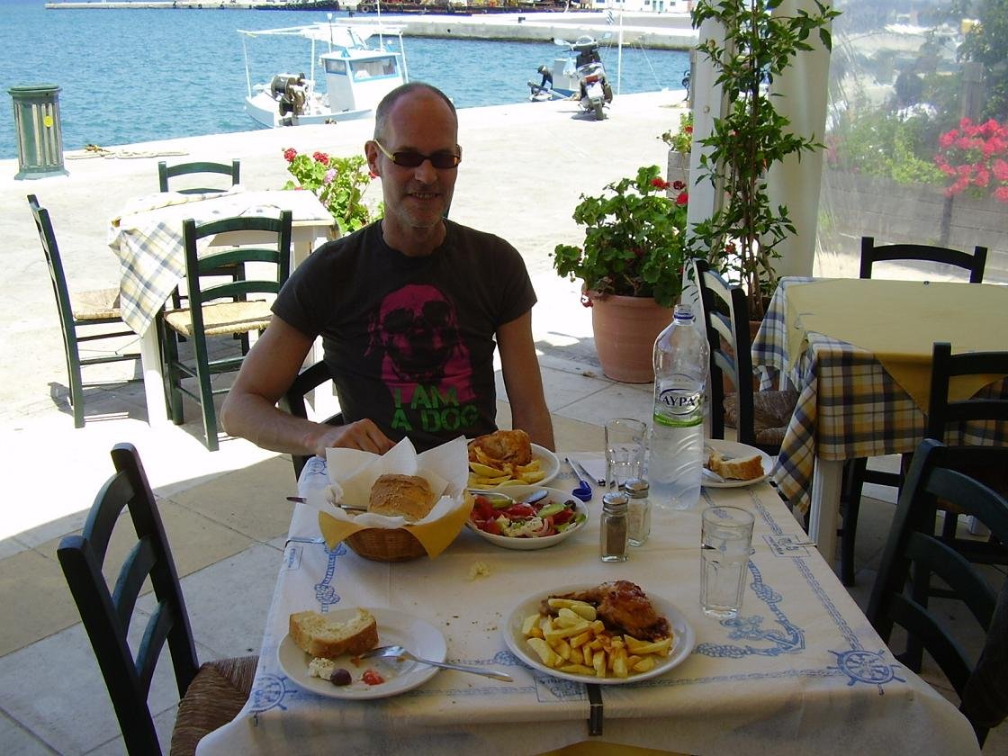 This used to be our favorite restaurant in Pythagorion in the old days (1997) and so we had to try it again. Most of the people that worked there had gone (with the exception of one waiter that we recognized) but our gues is that the cook was also still there. They have a lot of things on the menu in Ambrosia restaurant. This time we tried the crab salad (which came tastfully decorated with a tomato in the shape of a flower on the top, but with surumi sticks - it was still very good though), and we tried the fries, which were crispy and tasty, and the pita giros: cheap and delicous. Also no bad comments an the zuchini balls. This is a good restaurant. Our verdict: maybe the best restaurant in the harbour of Pythagorion? 8,5 out of 10 |