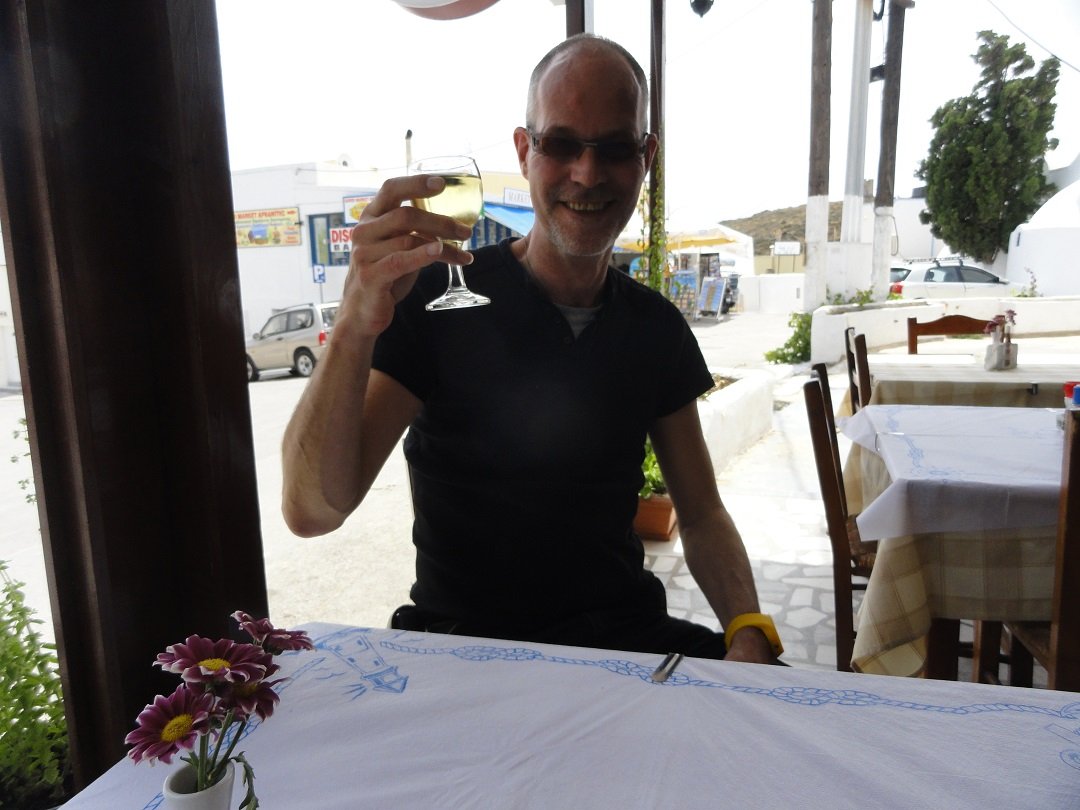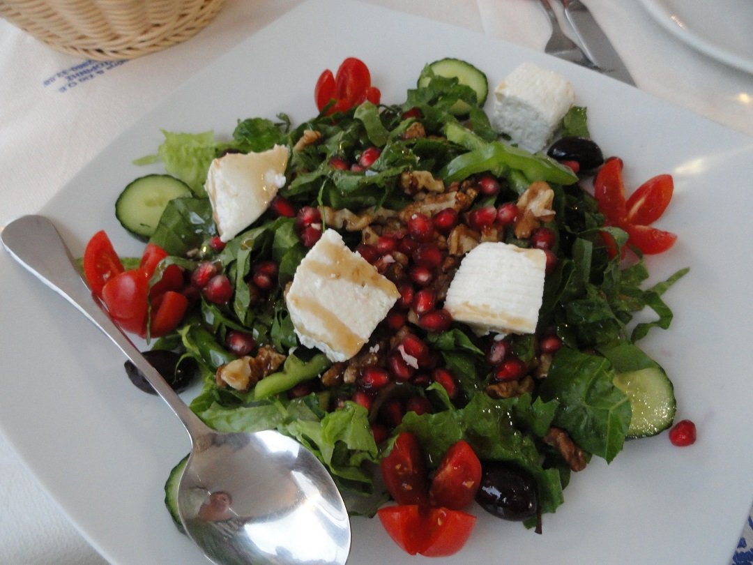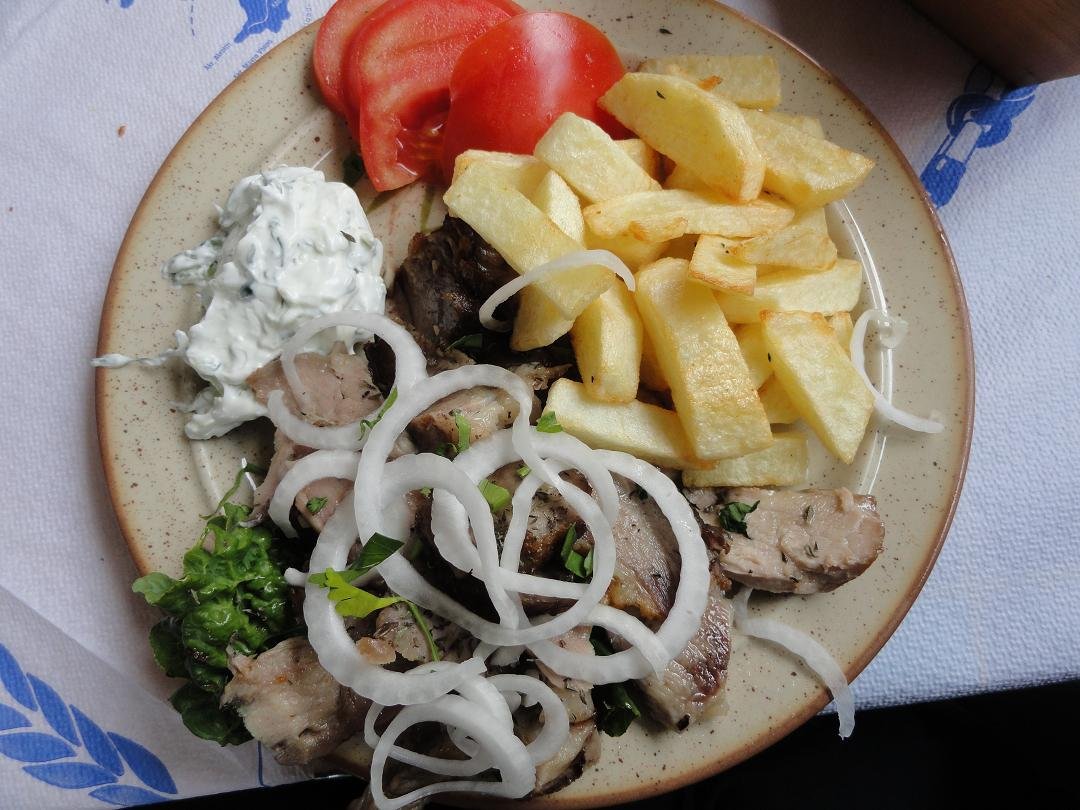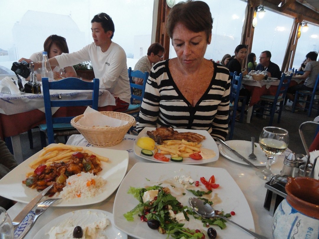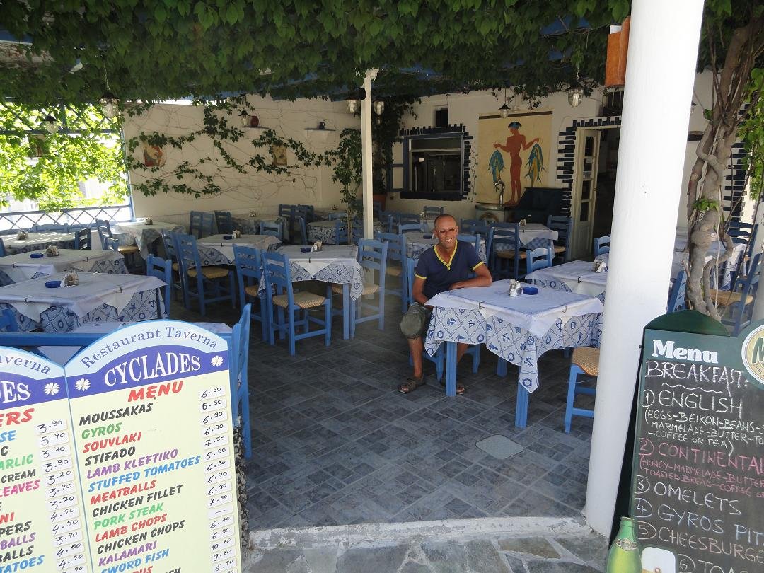 Een van de restaurantjes die je tegenkomt als je bij het centrale plein van Akritiri je auto hebt neergezet. Wij bestellen er een schotel voor twee personen, die onder andere bestaat uit saganaki (geflambeerde kaas), gevulde champignons, tomatenballetjes en spinazietaart. Alles smaakt goed, inclusief de huiswijn. Ons oordeel: goed, een 8 uit 10 |