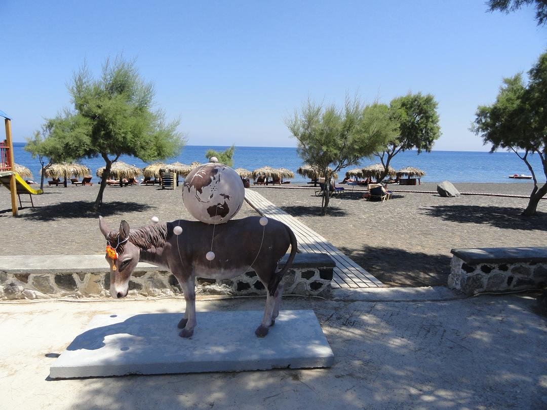 Voor ons is dit de kleine "parel" van de restaurants in Perissa. Het heet Visanto maar je ziet misschien eerder het bord waarop staat "Thai and Indian Food". Het is aan de waterkant dicht bij die prachtige plastic ezel die je tegenkomt als je een wandeling maakt langs de boulevard. Naast het normale Griekse eten hebben ze hier ook Thaise en Indiase gerechten, en daar houden wij van. We waren drie dagen in Perissa en we hebben hier drie keer in de avond gegeten. We hebben allerlei verschillende curries geprobeerd, van mild tot heet en we hadden een aantal fantastische bijgerechten (de naam ben ik vergeten, maar de humoristische dame die daar werkt weet wel wat lekker is). Als we ooit terugkeren naar Perissa en er nogmaals verblijven, zitten ze weer met ons opgescheept. Leuke sfeer en ook een leuke plek om een drankje achteraf te nemen en de mensen voorbij te zien lopen over de boulevard. Ons oordeel: zeer goed, een 9 uit 10 |