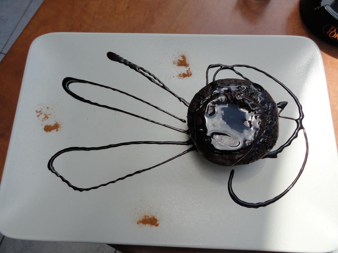 Eetgelegenheid in een van de straatjes in Fira die met keitjes zijn geplaveid. Het Select Lounge Caf� heeft een werkelijk schitterend uitzicht over Fira, en daar betaal je ook voor. Het is er niet goedkoop. Een kop koffie kost er al 4,80 euro (2011). Ze verkopen er verschillende soorten koffie, ijs, taartjes, fruitsalades, gewone salades, diverse soorten ontbijt, omelettes, cr�pes, wafels, broodjes en verschillende hoofdgerechten. Wij bestellen er een cappuccino met een chocoladetaartje. Zowel de koffie als het taartje smaken erg goed. Het taartje is warm. De rekening komt hiermee op 21 euro. Ons oordeel: goed, een 8 uit 10 |