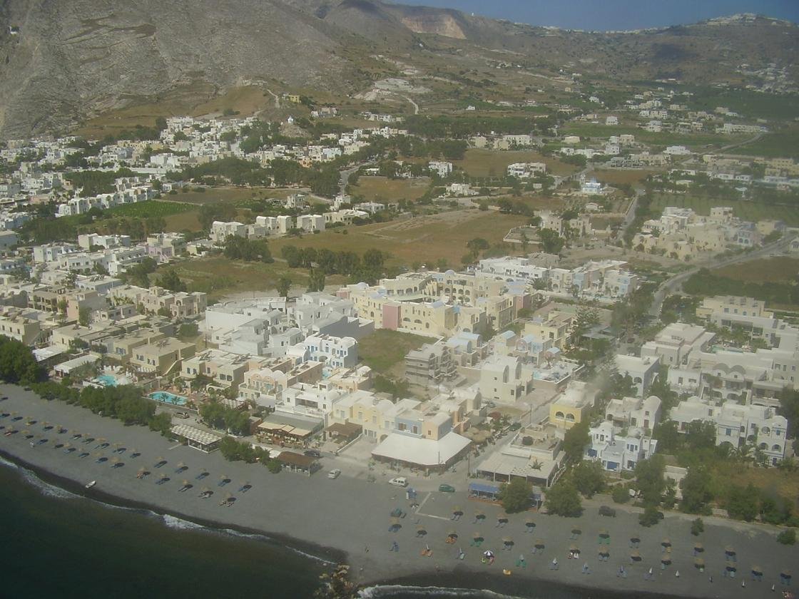 - Agios Georgios Beach - Agios Georgios Beach ligt in het zuiden op maar een halve kilometer afstand van Perivolos Beach. Er zijn veel kleine taverna's en er is een ruime keuze qua accommodaties die aan het strand liggen. De afstand tot Perissa is ongeveer drie en een halve kilometer en het strand is er iets rustiger dan in Perissa - eigenlijk is het allemaal ��n lang zandstrand. Wie zei er ook alweer dat de stranden op Santorini niet zo goed waren??? Net als de andere stranden is Agios Georgios een strand met faciliteiten en het is dus geen probleem om een strandbedje en een parasol te huren. Ook zijn er allerlei soorten watersporten die je kunt beoefenen. De stranden op dit stuk van het eiland lopen eigenlijk allemaal in elkaar over en het is soms moeilijk ze van elkaar te onderscheiden. Wie weet loop je 100 meter en bent dan op twee stranden geweest. |