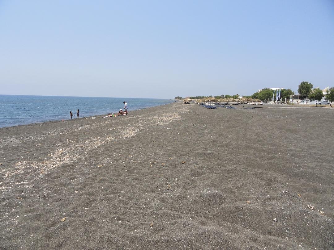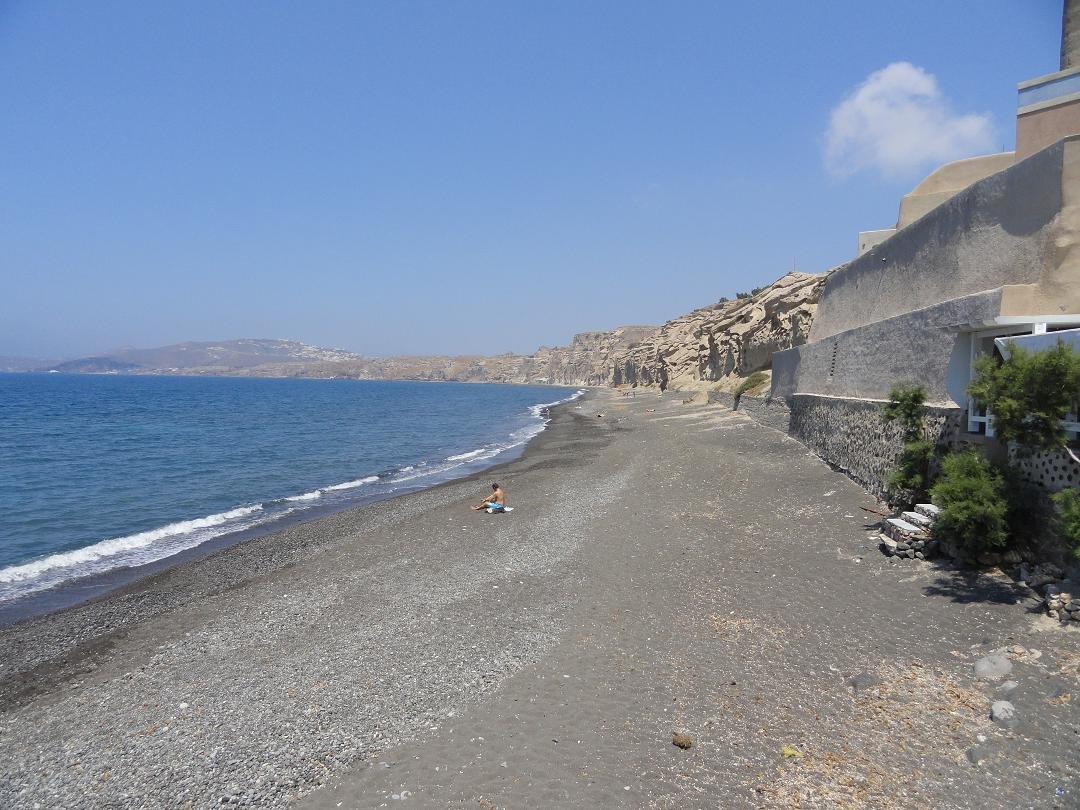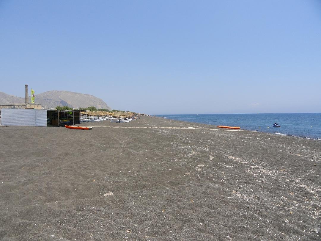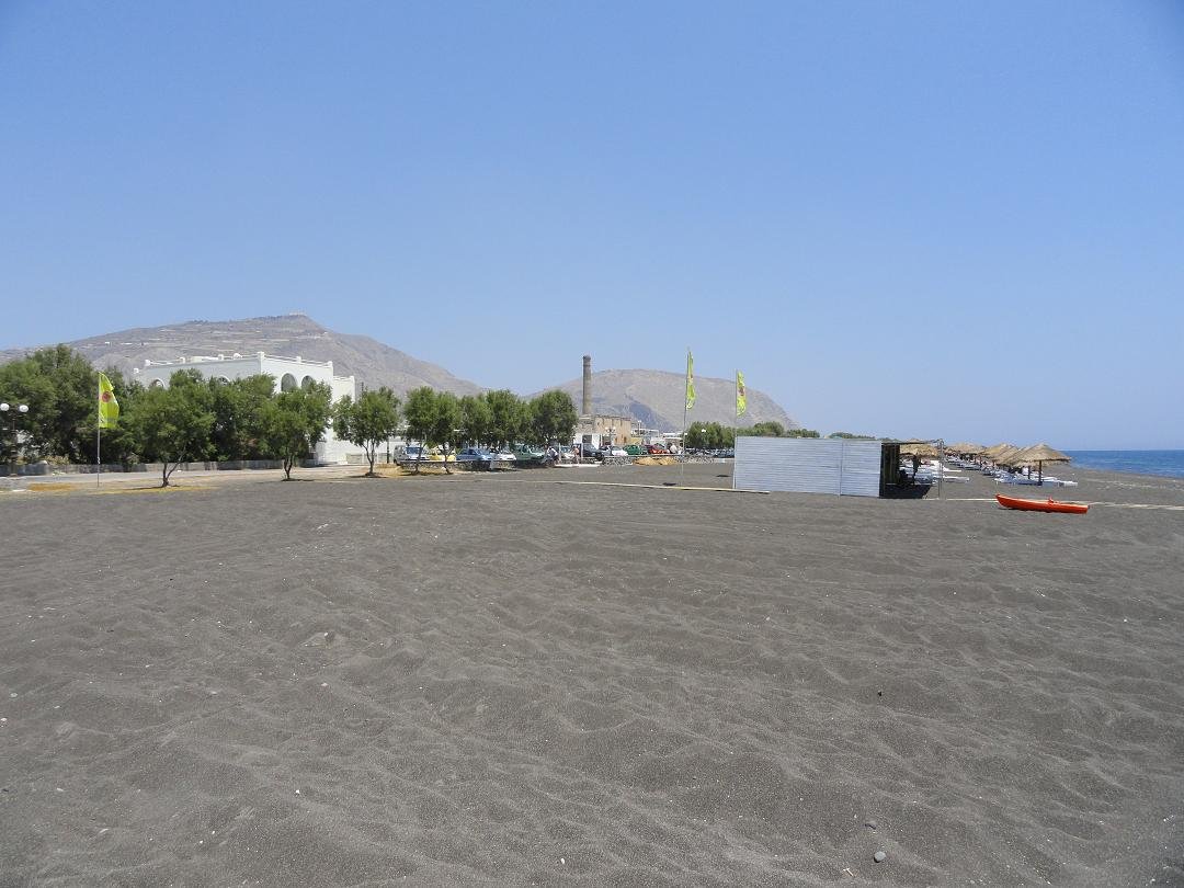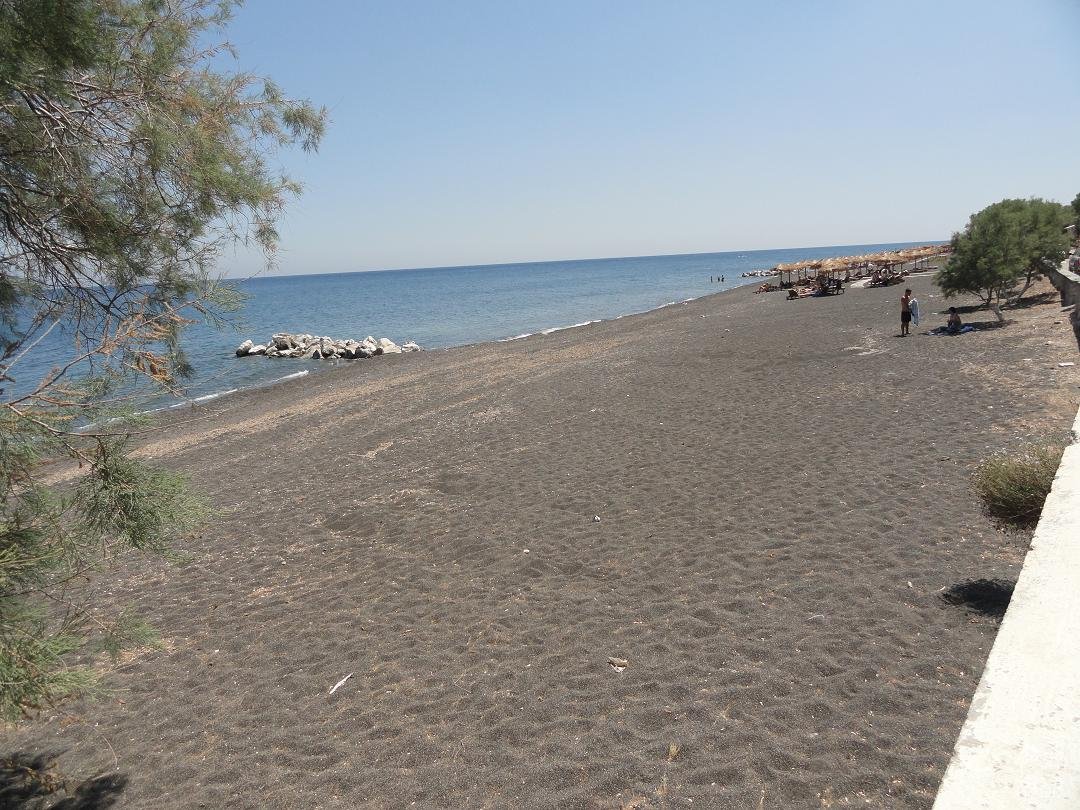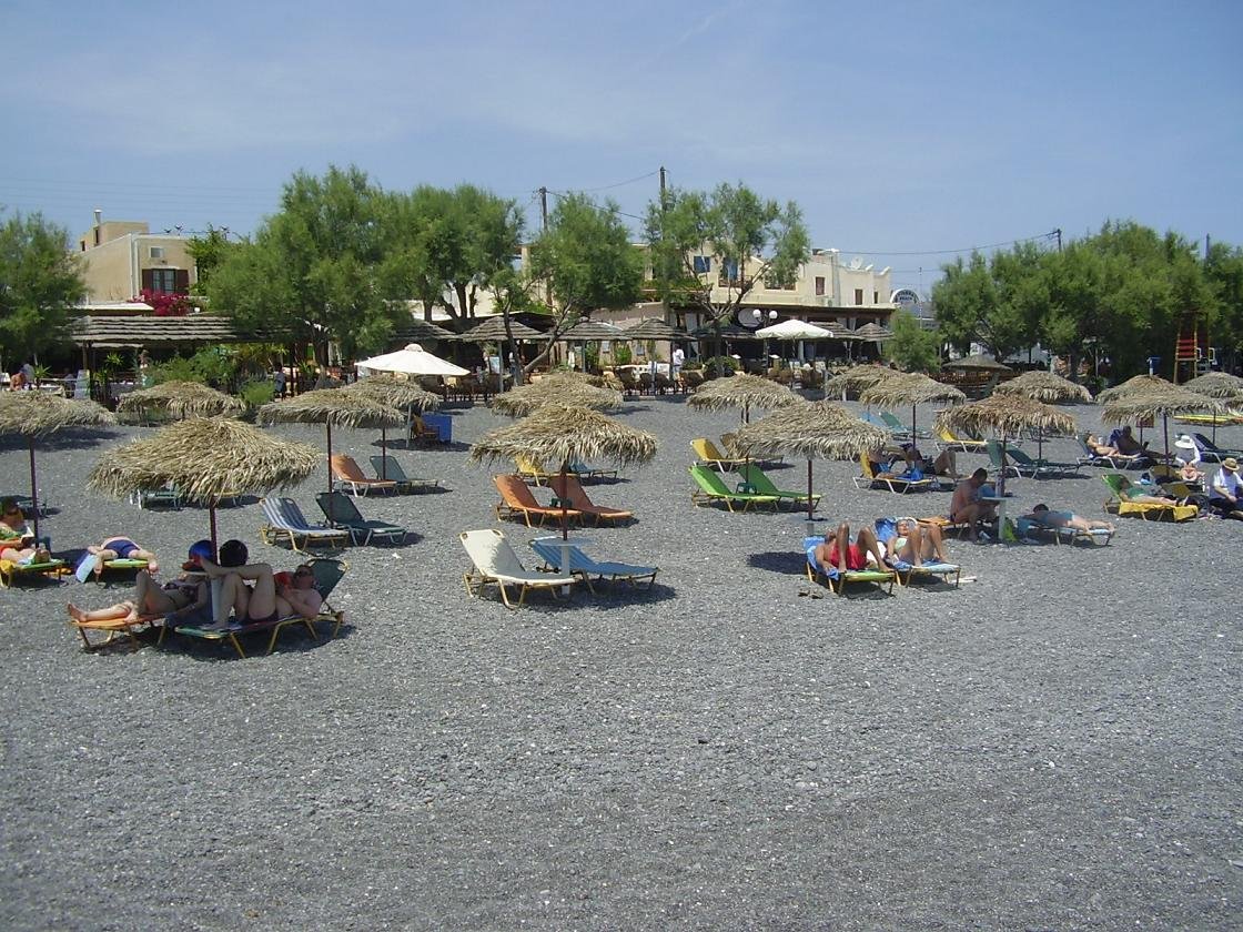 - Perivolos Beach - dit strand ligt niet ver van Perissa Beach aan de zuidkust en is ook nog relatief rustig. Eigenlijk kun je Perivolos Beach beter zien als een soort verlengstuk van het strand van Perissa en het strand van Agios Georgios dat er ten zuiden van ligt. Het zand op het lange strand van Perivolos is eerder donkergrijs-achtig in plaats van zwart. Het is een beetje een mengeling van kiezels en zand. Alledrie de laatste stranden zijn georganizeerde stranden met faciliteiten. Er zijn parasols en stranddtoelen te huur en er is een ruime keuze in taverna's, kafenions en accommodaties. Ook is er een mogelijkheid tot het beoefenen van watersporten. De afstand vanaf Perissa is 3 km. Het strand is te bereiken met de bus, de taxi of te voet. |