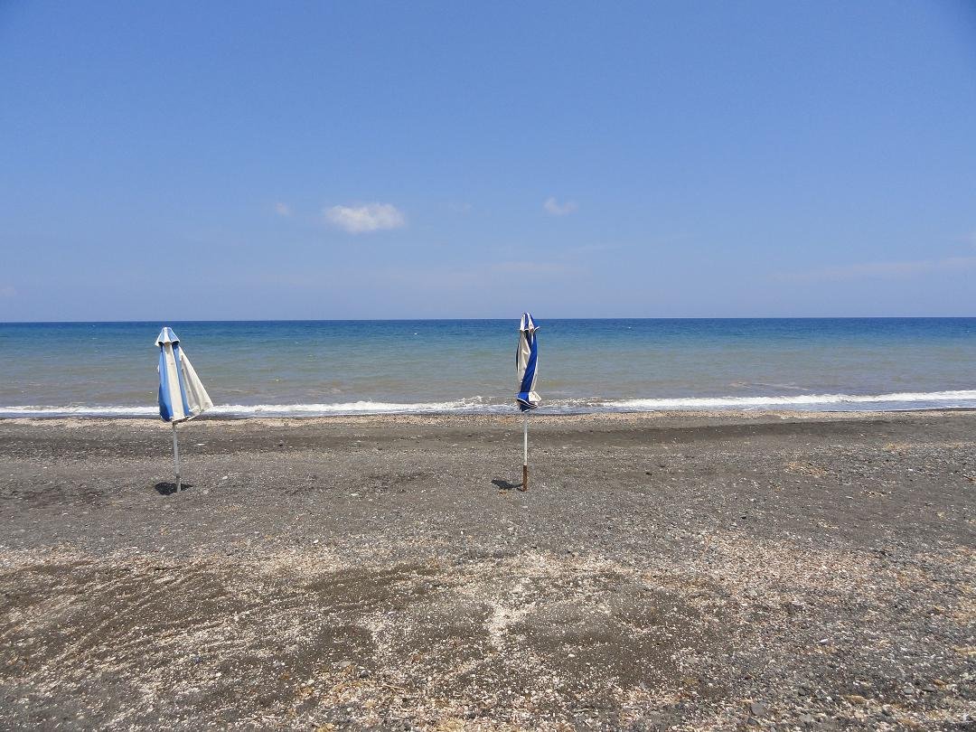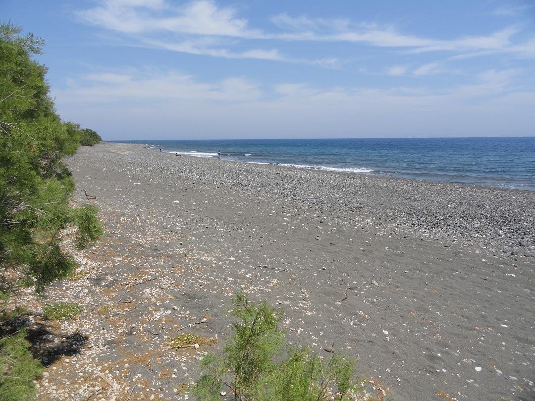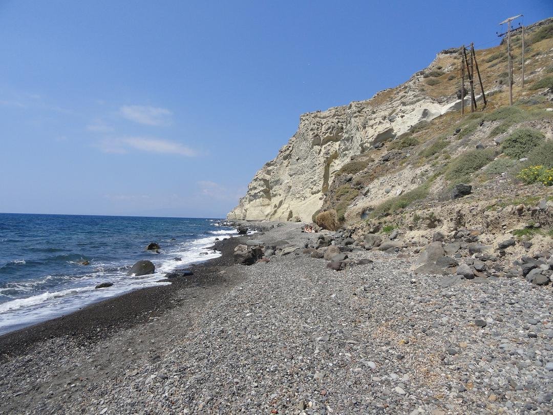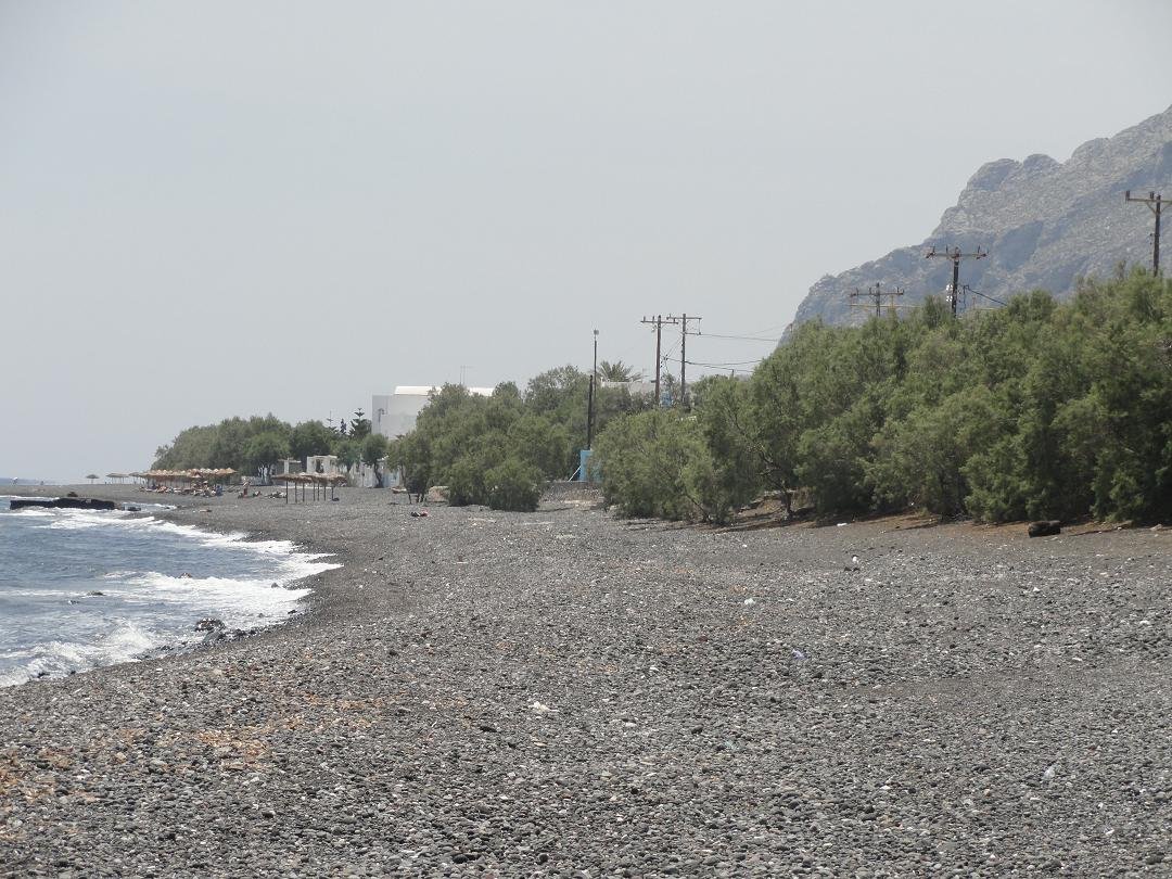- Agia Paraskevi Beach en Avis Beach zijn de twee stranden ten zuiden van Monolithos Beach tussen Monolithos en het dorp van Kamari. Agia Paraskevi Beach is het meest noordelijke van de twee en het is meer een strand met zand en aardig wat kiezels en het is er wat rustiger dan op Avis Beach. Er waren geen faciliteiten toen wij er waren. Avis Beach is een kiezelstrand met enkele parasols en wat faciliteiten. Op beide stranden zijn er bomen in het geval je in de schaduw wilt zitten. Bij beide stranden zul je vliegtuigen over zien vliegen want ze zijn niet ver van het vliegveld gelegen. |