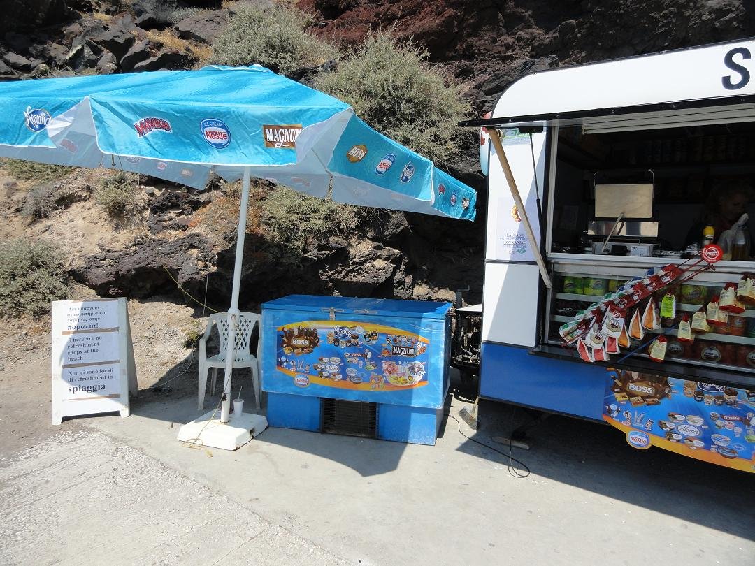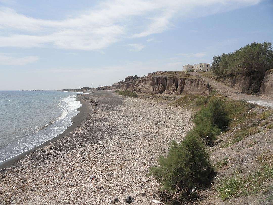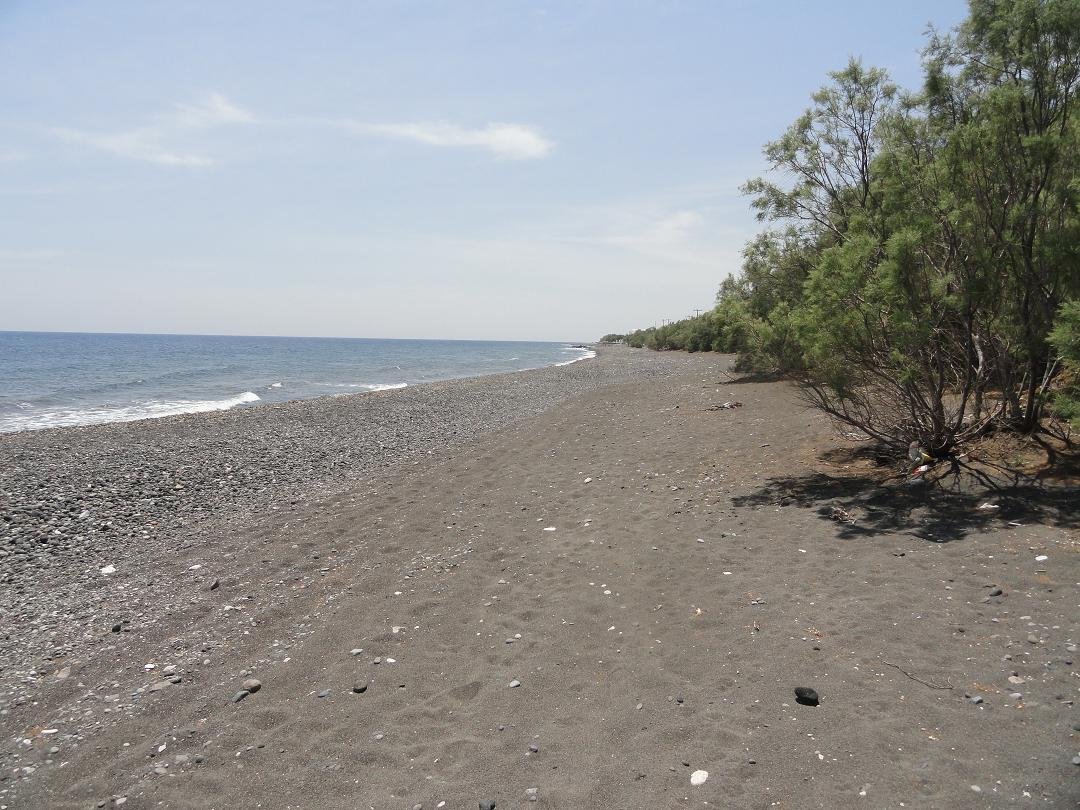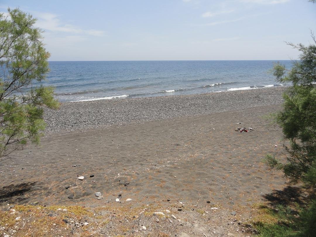 - Agia Paraskevi Beach en Avis Beach zijn de twee stranden ten zuiden van Monolithos Beach tussen Monolithos en het dorp van Kamari. Agia Paraskevi Beach is het meest noordelijke van de twee en het is meer een strand met zand en aardig wat kiezels en het is er wat rustiger dan op Avis Beach. Er waren geen faciliteiten toen wij er waren. Avis Beach is een kiezelstrand met enkele parasols en wat faciliteiten. Op beide stranden zijn er bomen in het geval je in de schaduw wilt zitten. Bij beide stranden zul je vliegtuigen over zien vliegen want ze zijn niet ver van het vliegveld gelegen. |