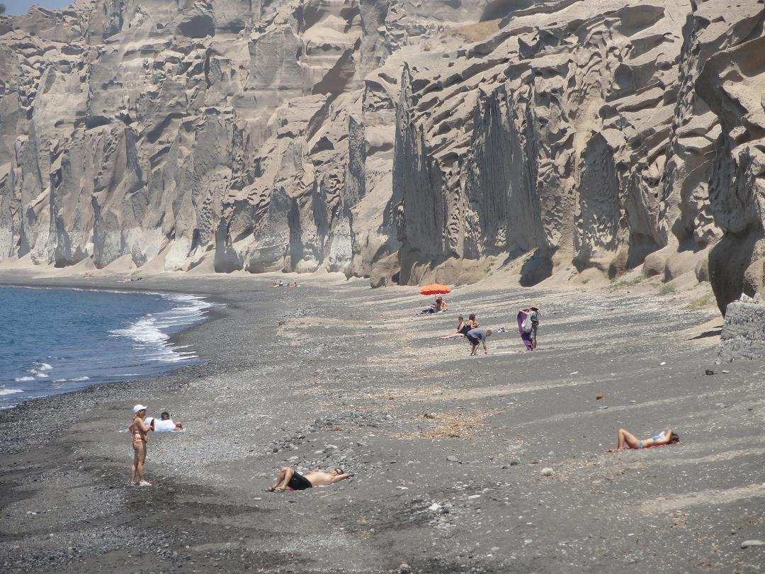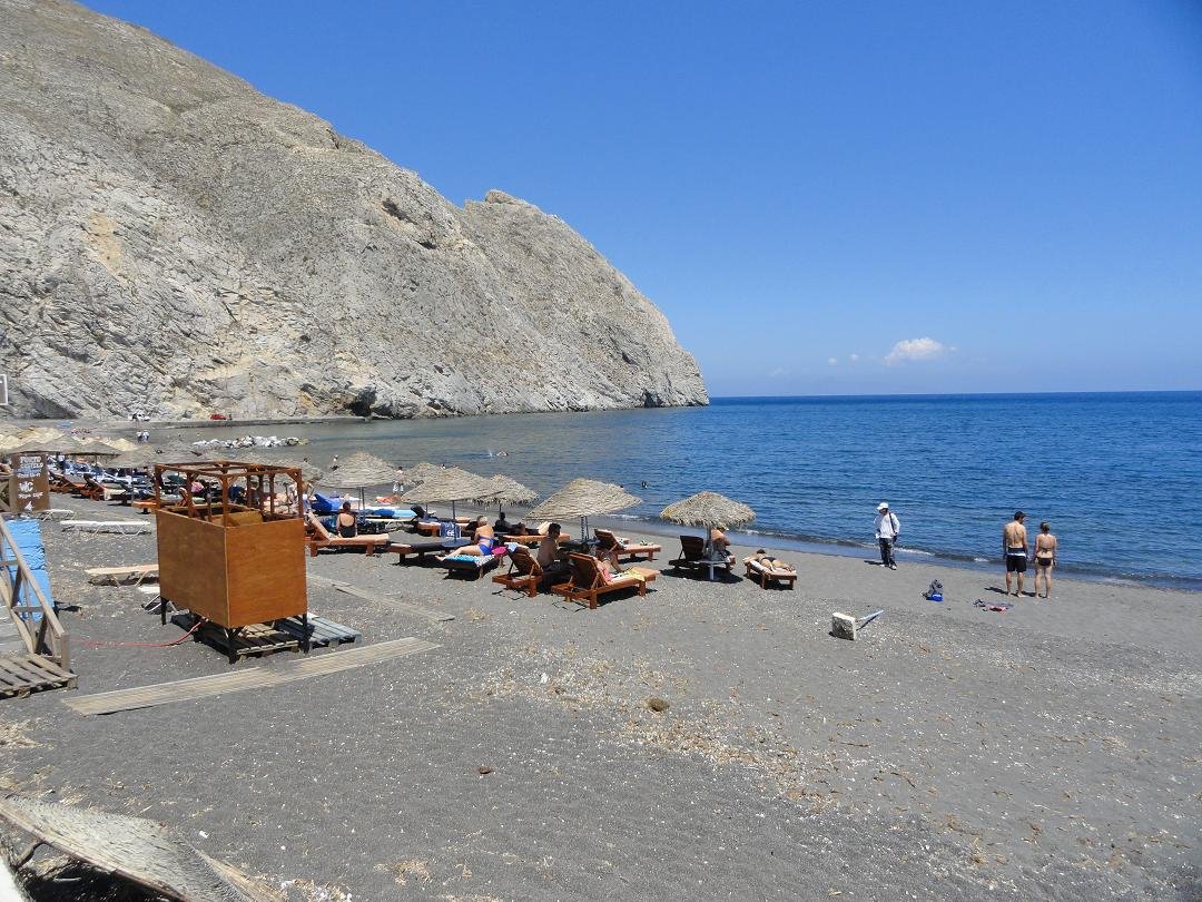 Aangezien Santorini een vulkanisch eiland is zijn de meeste stranden niet echt brilliant. Meestal bestaan de stranden op het eiland uit zwarte steentjes en zijn ze ook niet heel erg groot, met uitzondering dan van de stranden die in het zuidoosten van Santorini zijn gelegen. Er zijn nog wel eens wat negatieve berichten over de stranden op Santorini maar persoonlijk vind ik het allemaal best meevallen. Er is voor iedereen wel wat. Jammer dat de meeste stranden donker van kleur zijn, maar ze zijn echt niet allemaal slecht en het is ook niet een en al kiezels. De stranden van Perissa en dan verder naar het zuiden zijn best mooi en ook in de buurt van Oia of Fira kun je aardige (en soms ook grote) stranden vinden als je er maar op uit gaat. En ja: soms ligt een strand in de wind, maar dat gebeurt op alle Griekse eilanden. Wie slim is gaat dan aan de andere kant van het eiland kijken. Er is altijd wel een strand te vinden dat daar op dat moment geen last van heeft. Ook zijn niet alle stranden overvol, wat je misschien zou denken bij zo'n eiland dat toch veel toeristen aantrekt. Wie gaat zoeken vindt vanzelf een strand dat bij hem / haar past. - Perissa en Kamari Beach - De stranden in het zuidoosten van het eiland, Perissa en Kamari zijn veel breder en groter en dit zijn dan ook de plekken waar veel van de accommodaties zijn te vinden. Perissa is meer een dorp van onafhankelijke reizigers en er zijn hostels, pensions en kamers te huur. Het ligt naast het dorp Emporio en is goed beschut tegen de zomerse Meltemi wind die soms over de Cycladen heen kan blazen. Perissa is beschermd tegen elke wind die uit het noorden komt omdat het naast de Profitis Ilias berg ligt. Kamari is wat meer een plek voor de wat duurdere hotels. Omdat de stranden zwart van kleur zijn kan het erg heet worden als de zon erop brandt. Strandslippertjes meenemen is misschien geen slecht idee. |