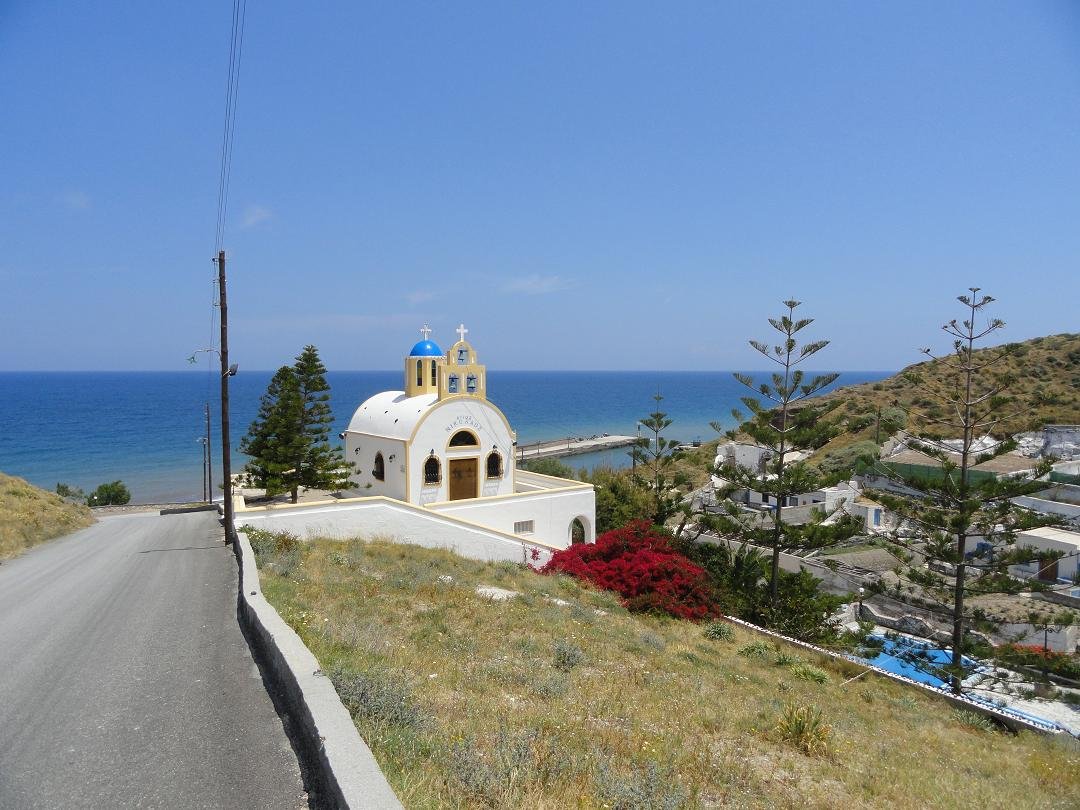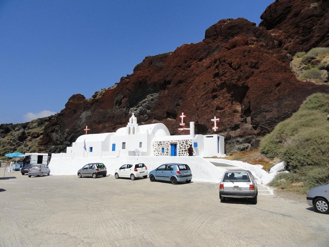 - Kanakari Beach is gelegen aan de oostkant van Santorini en kan worden bereikt door een weg in te slaan in Fira die in de richting van de camping gaat. Daarna is het een beetje een zig-zag, maar als je het probeert en je blijft richting de kust rijden dan kom je er wel. Het ligt tussen de stranden van Vourvoulos en Exo Gialos in. Kanakari bestaat uit twee stranden aan elke zijde van een kleine vissershaven. Aan de zuidkant is een smal en lang kiezelstrand en aan de noordkant is een beter en groter zandstrand met ook een aantal kleine kiezeltjes. In het water van het kleine haven zijn een heleboel zwanen en een paar eenden. Net boven de haven staat een heel schattig kerkje. |