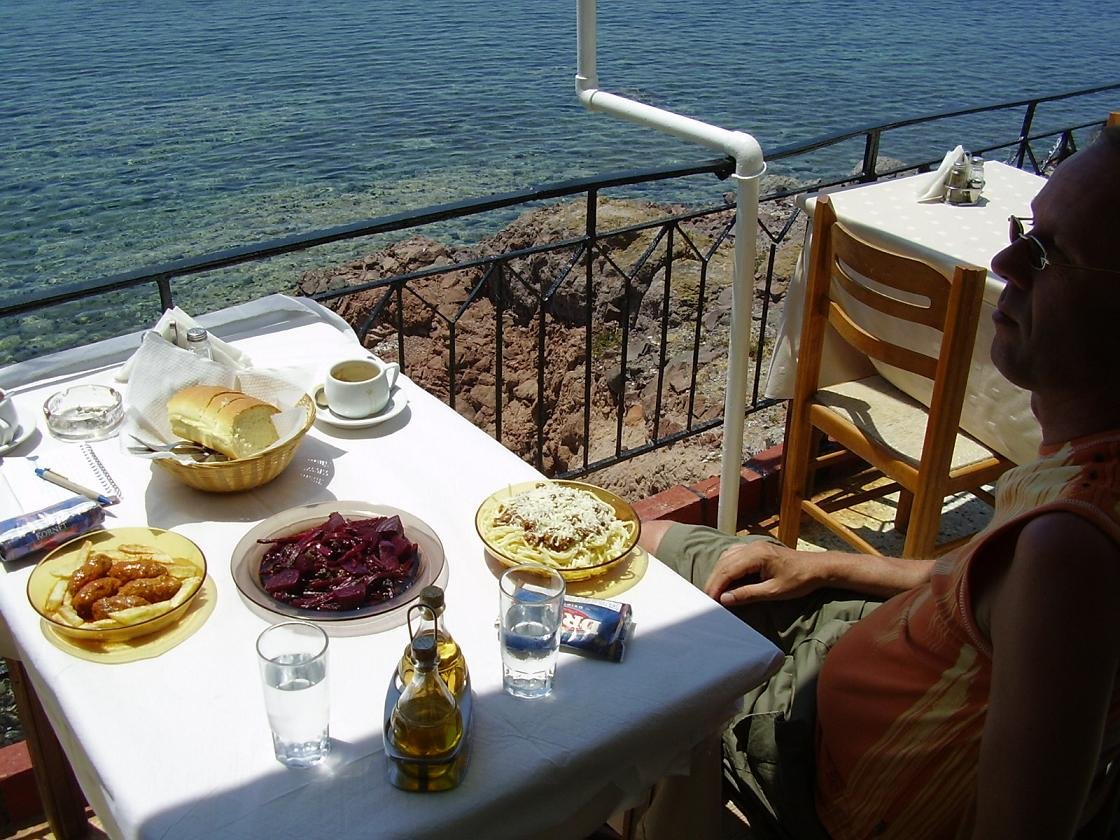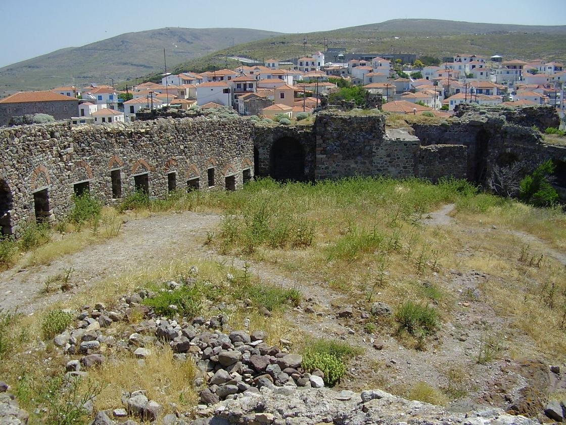 Het dorp Sigri ligt in het westen van Lesbos. Het werd in een reisgids omschreven als zijnde het einde van de wereld. Deze tijd is wel al een beetje voorbij, want toeristen hebben in de tussentijd dit dorpje wel weten te vinden, en terecht, want het is er heel leuk. Sigri straalt gezelligheid uit, heeft aardig wat leuke restaurantjes, een paar leuke en goed verzorgde stranden (geen parasols toen wij er waren, maar wel bomen), een leuke kerk, een prachtig Turks fort waar je naar binnen kunt, en er ligt een mooi eiland voor de kust. Alle ingredienten dus voor een charmant kustdorp. Het prachtige fort van Sigri stamt uit 1557 en is gebouwd op de fundamenten van een eerder Genuese burcht. Tot 1922 waren de meeste inwoners van het dorp moslim, maar in de bevolkingsruil in dat jaar (Turken gingen naar Turkije en Grieken die in Turkije woonden kwamen naar Griekenland) werd hun plaats ingenomen door Griekse bewoners van het eiland Tenedos. Ook de vierkante dorpskerk uit 1870 is ooit door de Turkse bevolking gebouwd en is van oorsprong een moskee. Bij hun vertrek in 1922 namen zij de iconen van de kerk mee. Bij gebrek aan een toren hangen de klokken aan een trap. Verder zijn er in het dorp nog een Turks badhuis en verscheidene Turkse waterbronnen. |