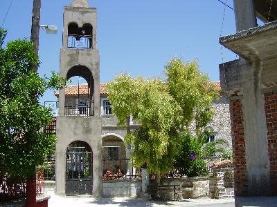 Je vindt veel oude huizen en nauwe straatjes in het dorp Sikounta. Het ligt even ten noorden van de Golf van Geras. De grote kerk heeft een (zo te zien) nieuwe betonnen toren. Ervoor staan twee bronnen waar je vers water kunt halen. Hier en daar staan de betonnen skeletten van huizen in aanbouw. In de acheraf straatjes is het erg stil. Het is gewoon een dorpje op Lesbos, niet echt heel bijzonder, maar wel een met veel plekken om water te halen, en een plein dat in de schaduw ligt. |