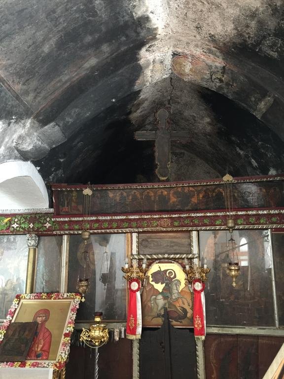 De meeste huizen in Stavrochori maken een vervallen indruk. Hier en daar staan deuren open en zie je oude meubels staan in de half ingestorte huizen. Deze worden dan weer afgewisseld met een enkel huis dat prachtig is opgeknapt. Veel van de huizen in het dorp staan te koop, zowel de bouwvallen als de opknappers. De stilte in het dorp is vreemd als je bedenkt dat het ooit het dichtstbevolkte dorp van de streek was en ook het administratieven centrum (nu Koutsouras). De meeste bewoners zijn 7 kilometer naar beneden verhuisd en in het dorp Koutsouras gaan wonen. In vroegere tijden was dat juist omgedraaid toen de bewoners van Koutsouras naar de bergen verhuisden om aan de aanvallen van piraten te ontsnappen. Vandaag de dag heeft het dorp Stavrochori ongeveer 150 permanente bewoners. |