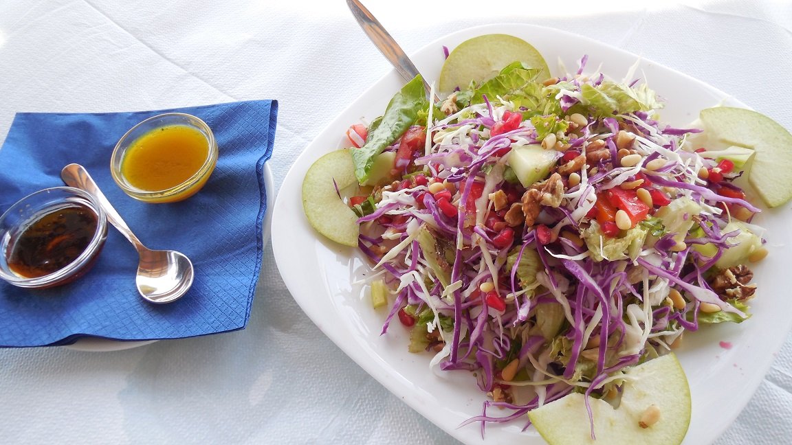 De Tersanas Taverna is gelegen bij de strandjes van Tersanas. Het is een leuke plek met een mooi uitzicht op de baai en de stranden. Je kunt er visgerechten bestellen, maar ook andere Griekse gerechten. Wij bestellen de Tersanas salade en de vleesschotel voor twee. De salade komt met twee verschillende lekkere sausjes, de bediening is vriendelijk. Ons oordeel: een 8 uit 10 |