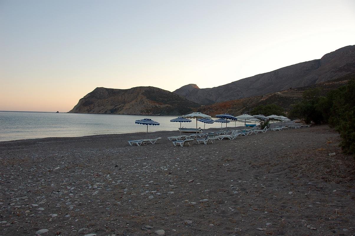 The main beach of the island of Tilos is the town beach of Livadia. It is a clean pebble beach beach where there are facilities and you can rent parasols and sunbeds. Since the beach is in the village there are tavernas where you can get a drink or something to eat and there is a choice in accommodation. The beach is long and narrow and even in high season it does not get overcrowded. Eristos Beach is the most famous beach of the island of Tilos. It is a 1200 meter long sandy beach where naturism is also allowed. The beach is covered with trees and it is concidered to be the best of the island. Busses that run between Livadia and Megalo Chorio will make a stop here. Slowly Eristos beach is becoming more touristic and a new hotel and an apartment complex have been built here, offering parasols and sunbeds as well. Most of the beach is still unspoilt and quiet though. Probably the best option for naturists. 2 Kilometers east of Megalo Chorio are the smalle settlement and the nice beach of Agios Andonios (or sometimes also called Agios Antonios) which is named after a chapel that can be found here. The Chapel of Agios Antonios had frescoes that were all but one destroyed by the Germans during World War II. At Agios Antonios Beach you can see also see the petrified remains of human skeletons. It is believed that they were sailors that were caught in the Nisyros island vulcanic eruption of six hundred Before Christ. Lethra Beach is situated at a 45 to 60 minutes walking distance of Livadia on the north east side of the island. After about five minutes after leaving Livadia there is a walking path on right side of the road that climbs over a hill and than leads you down along te coastline. Lethra Beach is a pebble beach and if not too crowded (usually out of high season) this is also a place for the naturists. Agios Sergios Beach is situated in the south of the island and can be reached on foot and sometimes there is a trip by traditional fishing boat from the harbour of Livadia. Agios Sergios is a quiet beach that is set in a cove and surrounded by high mountains. Plaka Beach in the north of the island of Tilos is quiet and unspoilt with the exeption of the month of August. The far end of the beach is a naturist area (there is a sign "no nudism" but nobody seems to care). The beach can be reached on foot from Agios Andonios. There are many other small beaches which are accessible only on foot like for instance Red Beach, Skafi Beach, Tholos Beach and Stavros Beach. You can get details and a map for the walking routes at the Little Island office in the harbour of Livadia. These beaches are a good option for people that are looking for a beach that is quiet and peaceful, and also sometimes it will be an opportunity to jump into the sea without your textiles because often you will find yourself alone on these more isolated beaches. |