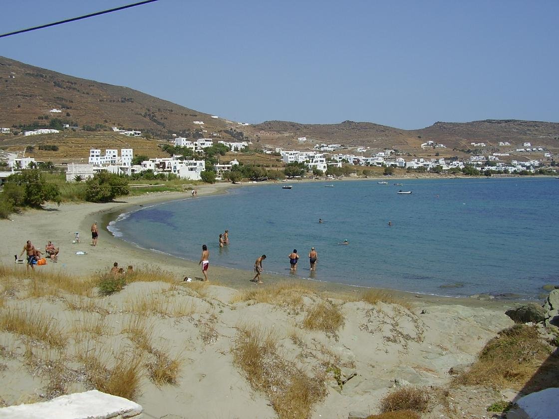 The nice small beach of Stavros is situated just outside of Tinos town. In the antique times there was a harbour here. Far into the sea you can see the remainss of the old harbour, and there is a small church on the beach. Normally it is very quiet here. The beach smoothly goes into the sea. |