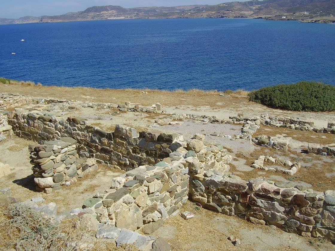 Nog maar een deel van deze nederzetting is opgegraven. Hierbij zijn onder andere munten, potten en juwelen gevonden. Ook nu kun je als je over de paden in deze nederzetting loopt nog overal de oranje potscherven op de grond zien liggen. Er zijn restanten van een stadsmuur, huizen en grote stenen gebruiksvoorwerpen te zien en vanaf het schiereiland heb je een spectaculair uitzicht over de stranden en de stad Sitia in de verte.
