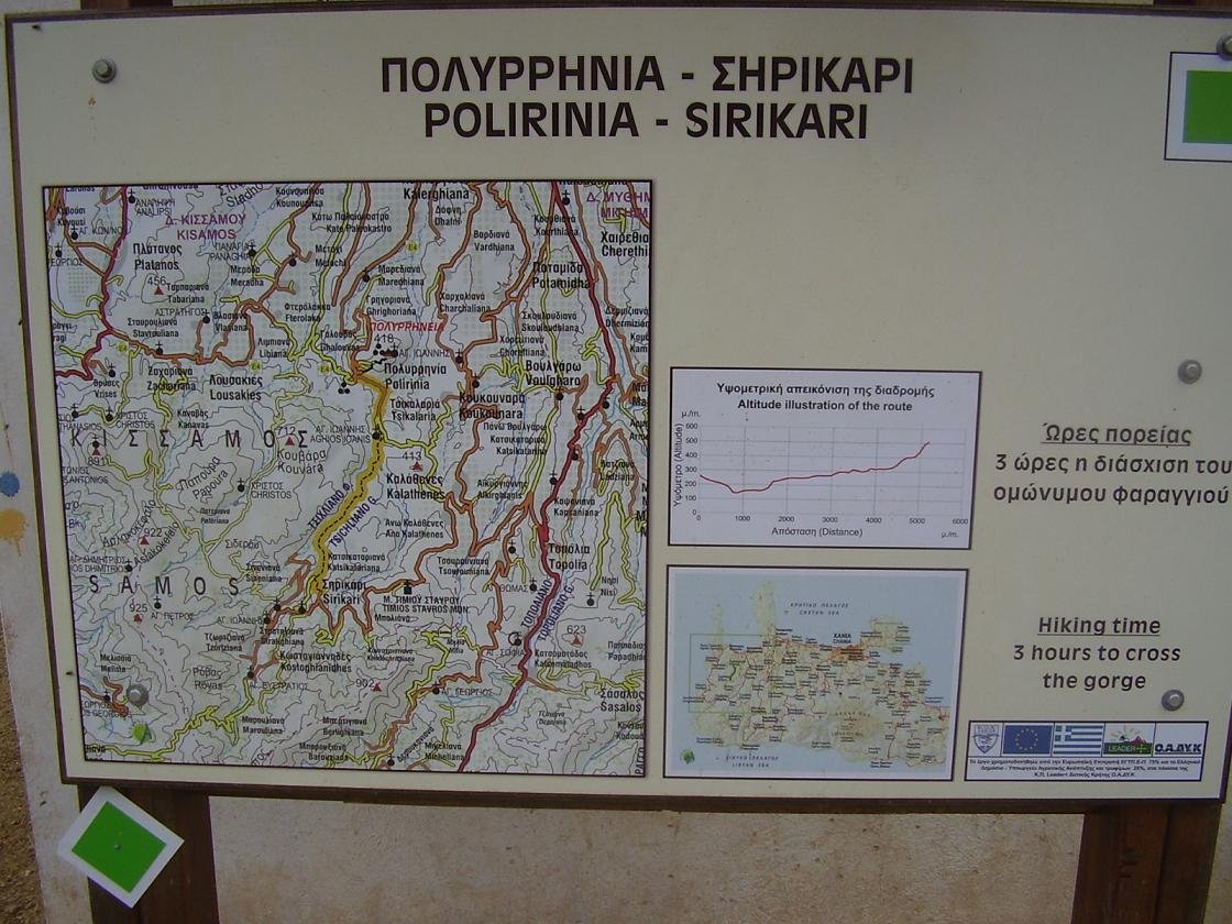 Het beste is om je wandeling beginnen in Sirikari bij de Agios Konstandinos kerk en dan naar beneden te lopen in plaats van omhoog gaan vanaf Polyrrinia. Onderweg zie je mooie natuur, mooie bloemen en vruchten. In het midden van de kloof is een beek en je bent omgeven door hoge kliffen, zingende vogels en dikke begroeing. De Tsichliano Kloof is uitgeroepen tot nationaal park. De wandeling door de kloof duurt ongeveer 3 uur en is in totaal 11 kilometer lang. |