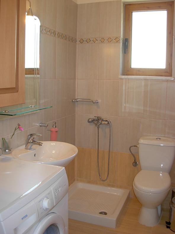The downstairs space of the villa is one large living / diner and there is a downstairs toilet. One part of the villa has the couch and the comfortable chairs, the other part next to the very nice kitchen has the dining table and chairs. There is satellite TV and a DVD and CD player. The kitchen is very complete and has a large fridge, a dish washer, a cooker, coffee machine, toaster and everything else you could wish for. There are doors leading to a veranda with a table and chairs in case you want to eat outside. The rooms in the house all have airconditioning. Upstairs you will find the three bedrooms, the bathroom (with shower, toilet and washing machine), a veranda with beautiful views and a balcony. The first bedroom is a double and next to this is a single bedroom. They both have doors to the veranda. The last bedroom is a twin bedroom with a private balcony. On the couch downstairs in the living room it's possible to make a bed for a sixth person. |