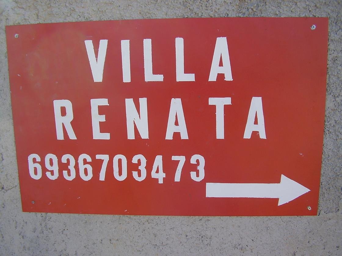 Villa Renata is gemakkelijk te vinden. Je neemt vanaf de hoofdweg de afslag waarop staat 'Megala Chorafia " op ongeveer 8 kilometer afstand van de stad Chania (richting Rethimnon) en rijdt de heuvel op. Als je komt rijden vanaf Chania en richting Rethimnon gaat zie je het aan je rechterkant. De weg de heuvel op is een beetje een slingerweg die met een bocht langs een kleine stenen kerk gaat en na een paar minuten zie je een bordje "Aptera" - alsof je nu het dorp Aptera inrijdt terwijl je in feite het dorp Megala Chorafia inrijdt. Meteen aan uw linkerhand ziet u een mini-markt en de taverna's zie je op twee zijden van een splitsing met wegen die leiden in drie verschillende richtingen. Je neemt de meest rechtse weg en na ongeveer 200 meter ziet je het grote rode bord van Villa Renata en je bent er. |