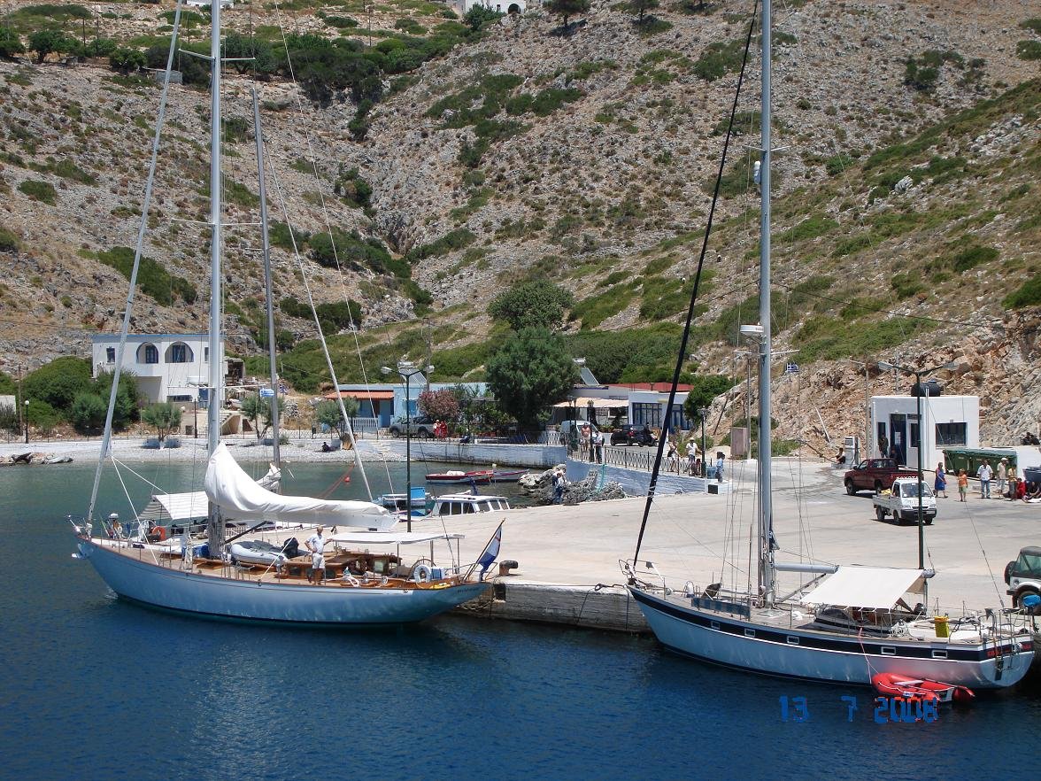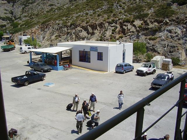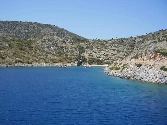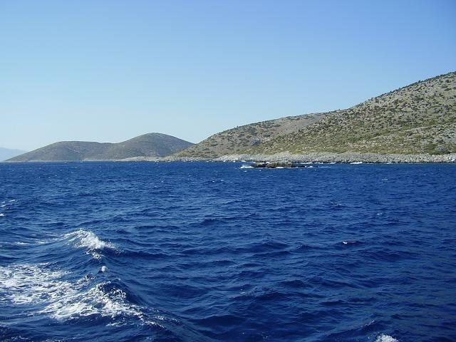 Op sommige websites wordt beweerd dat het eiland dagelijks bereikbaar is via Patmos, maar volgens mij is dat niet zo, en misschien hooguit tijdens het hoogseizoen. Normaal gesproken doet de veerboot zo ongeveer drie keer per week het eiland aan op de heenweg en terugweg op de route Samos - Agathonissi - Arki - Patmos - Leros - Kalymnos. Toen wij op die veerboot zaten werden we bij Agathonissi begroet door een grote school dolfijnen.