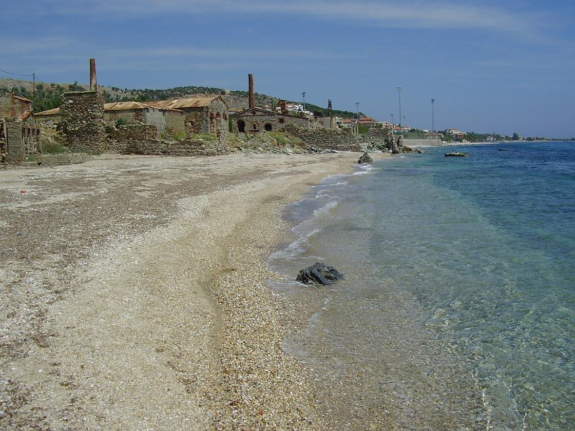 Agios Issidoros is a beach / village 2 kilometer east of the interesting town of Plomari in the south of Lesbos. There are a couple of hotels and tourist shops, and the beach comes with some sunbeds and umbrellas. A large part of the beach is without them and is very quiet, so a choice to everybodies taste. Next to Agios Issidoros is the Ouzo Museum and the quiet beach in front of the old ouzo factory that has fallen apart. The ouzo museum is opened during tourist season between 8.00 and 20.00 o'clock and the admitance is free. You can see how the ouzo is made and there are a number of pictures and and ouzo glasses. The tour takes you trough the factory and the shop that goes with it. Agios Issidoros is a large and more sandy beach with here and there a small pebble. In between Agios Issidoros Beach and Plomari you find a number of (mostly deserted, but nice) pebble beaches with cristal clear water where you can go for a swimm. This is where we spend some time naturist style (you were not overlooked and these beaches were empty at the time, so no textiles for us). Close to Agios Issidoros Beach at the end of a short and narrow road you find the small and intimate fishing village of Agia Varvara with a couple of fish restaurants and pensions. |