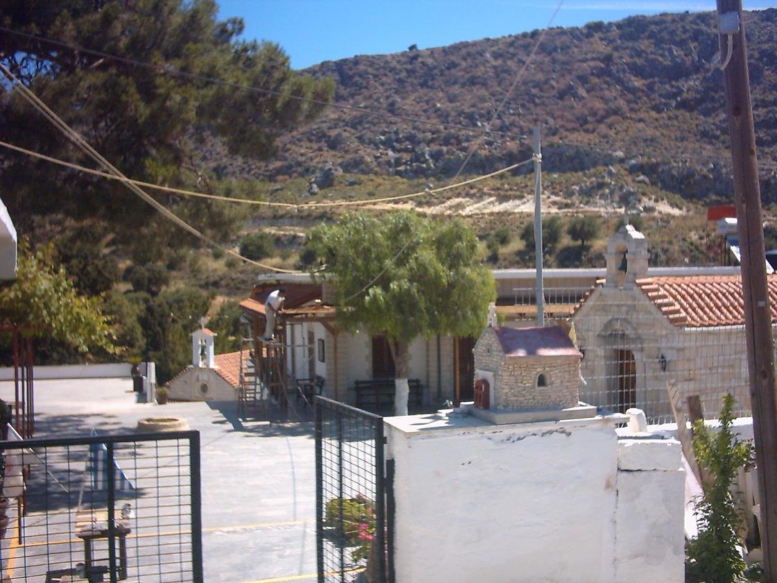 About 15 kilometers east of Heraklion, south of Kokini Chani and Gournes lies the village of Anopolis. This place is popular for the Watercity Waterpark, also called "Aqualand". The actual village though lies behind this tourist attraction and is a very sleepy little village with a couple of beautiful churches. On the edge of the village you will also find the Agios Yoannis Theologos Monastery. It was originally build close to the sea, but most of it was destroyed in a storm. In 1896 it was then moved to Anopolis and restored. The church is filled with frescoes and floor mosaics. Next to the old complex they are now building an even bigger extension of this place.