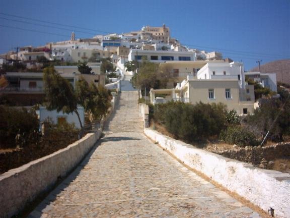 There are not that many accommodations are not in the old Medieval town of Ano Syros, but just below the San Giori Cathedral, which dates from the 13th century, you will find the Wind Tales Hotel. For the adventurous ones there is also a windmill for rent. Ano Syros is the second largest city of Syros (after Ermoupolis, to which it is glued). Ano Syros was built by the Venetians in the early 13th century. It is accessible by car, but a large part of the city consists of marble stairs. The distance to the port of Ermoupolis is about one kilometer. Ano Syros is built on a strategic place because of the view. From the Cathedral you can overlook a lot of other islands, such as Andros, Tinos, Mykonos, Delos, Paros and Naxos. |
