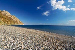 Het is niet echt een dorp, Charamida in het extreme zuidoosten van het eiland op de weg van Mytilini naar het vliegveld - Kratigos - Charamida. Het is eerder een strand met hier en daar een huis. Het gebied is erg groen. Er zijn meerdere strandjes in de omgeving, en eentje is niet onaardig, met een taverna en ook een caravan met terras omgedoopt tot taverna (2006). Geen slechte plek voor een stop. Er zijn koude drankjes en warme broodjes (best goed) te koop in de caravan. Het strand is een langgerekt kiezelstrand en het is erg rustig. Een prima plek om de auto even aan de kant te zetten en wat van de uitzichten te genieten. |
