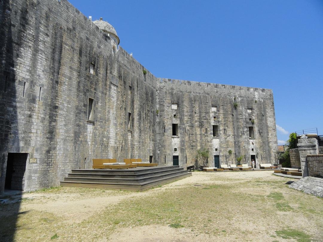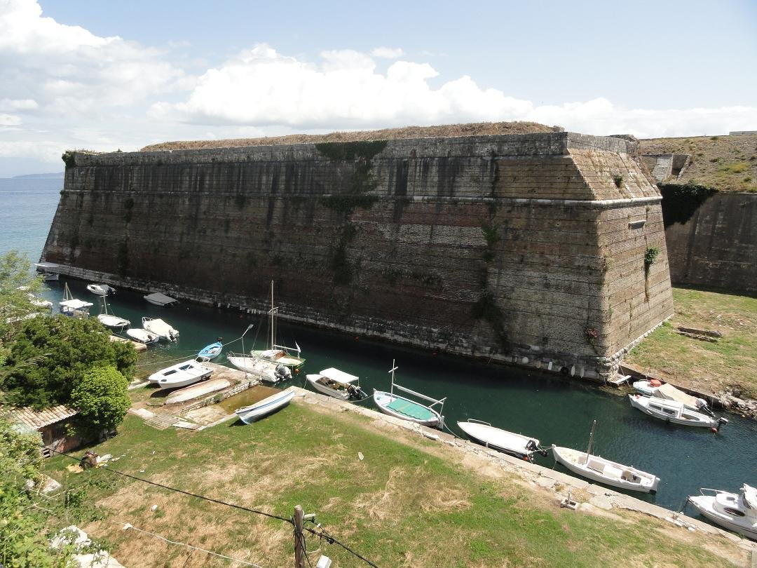 The New Fortress was built about 30 years after the Old Fortress. The construction began in 1576 and was completed 13 years later. The fort is also called the San Marco fortress. The emblem of San Marco, the winged lion, can be seen in several stone carvings on the outer walls of the fortress. The fortress was once surrounded by a canal. The new fort is now also open to the public after it was closed because it was military terrain (and a small piece of it still is). The entrance is 3 euros (in 2012) and here you can also climb to the top for spectacular views of Corfu town, the sea and the island of Vidos. |