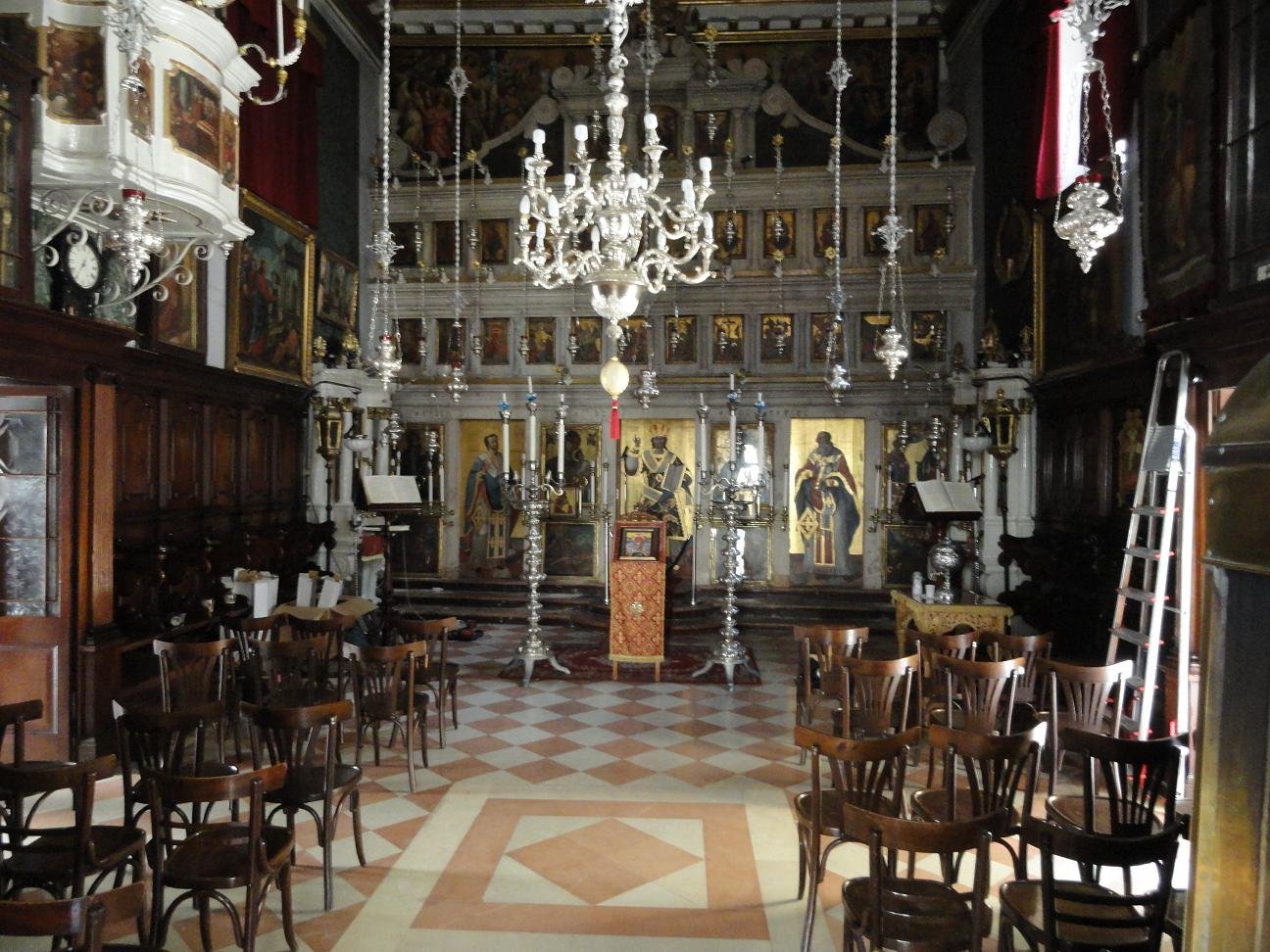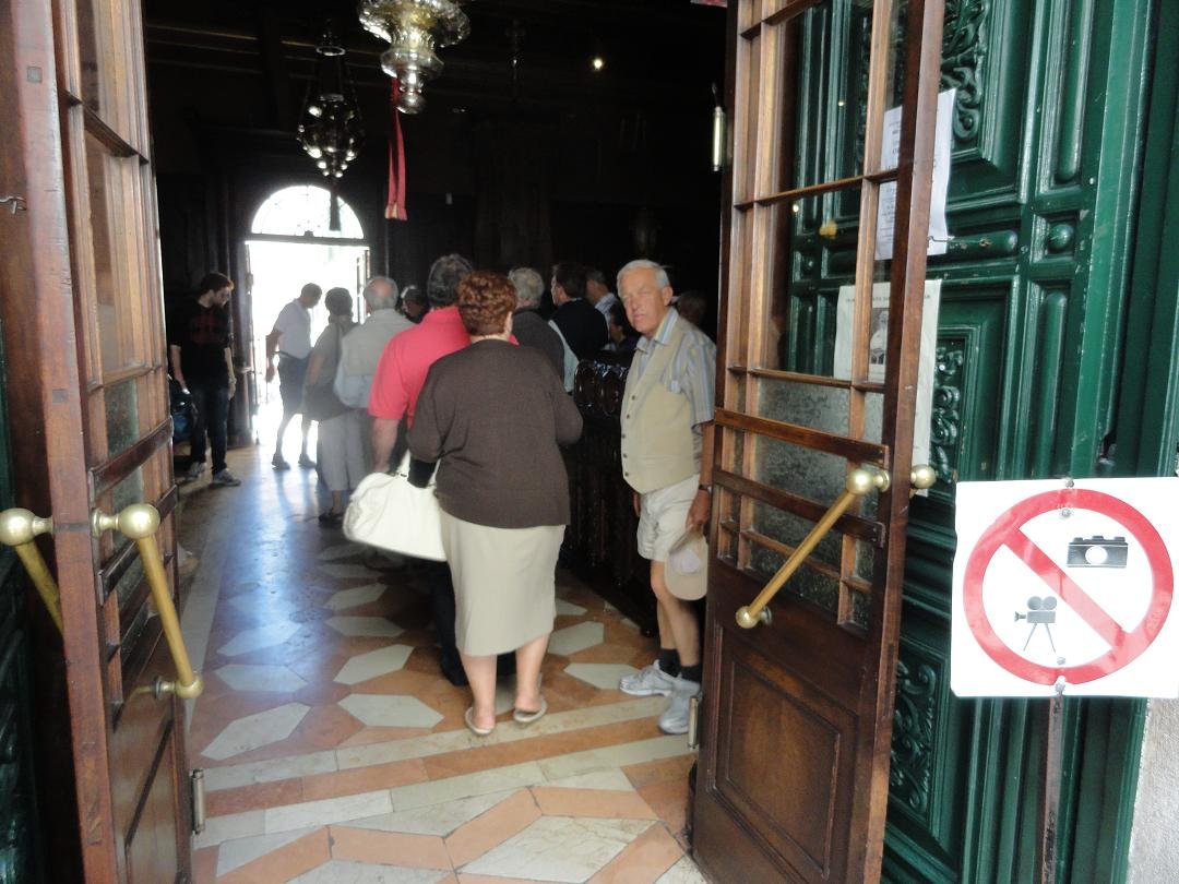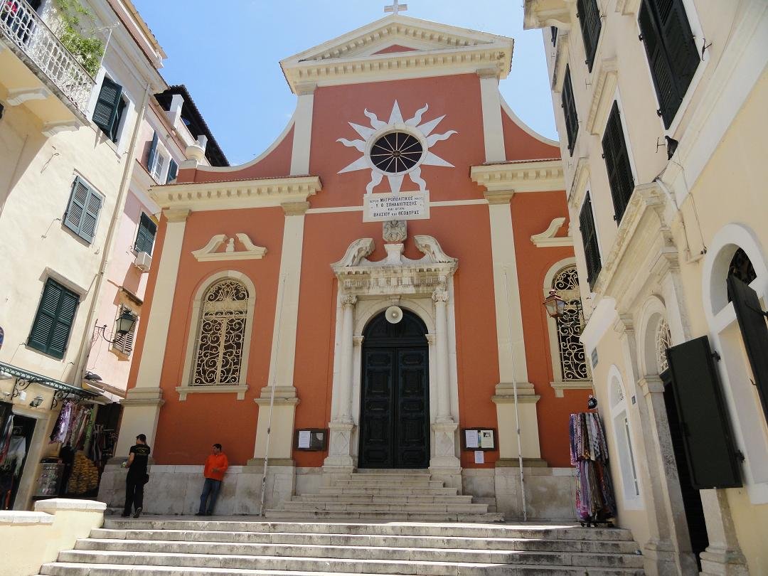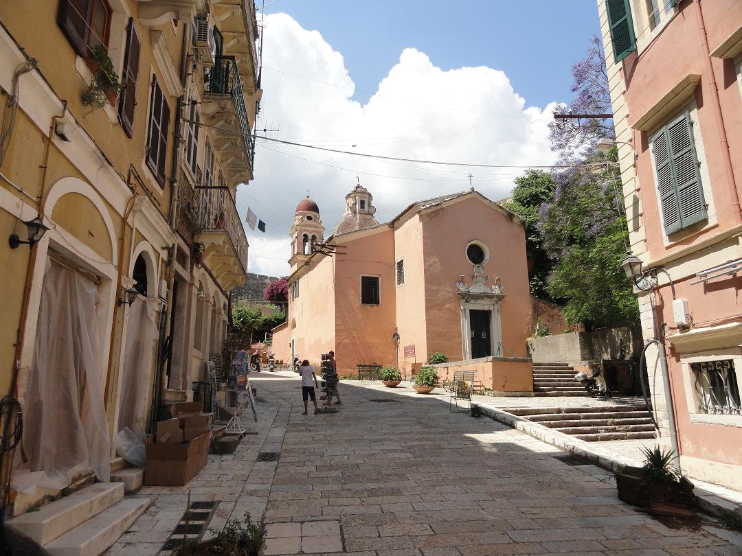 The St. Spiridon Church with its bell tower (the highest of the island) and red dome is situated at the end of the Spiridon Street. The church dates from 1589 and is the holiest place in Corfu Island. Here lies the mummified body of St. Spiridon, which was smuggled out of Constantinople in 1453 after the city was occupied by the Turks. Unfortunately this was the only church where I was not allowed to take pictures. The body was handed over to Corfu when his heirs lived. Spiridon was born in Tremithousa in Cyprus in the year 270, and he eventually became a bishop who according to legend performed many small miracles. He died in 350 AD and was buried there. When Cyprus was attacked by pirates, his body was dug up and brought to Constantinople. The body of the saint was not perished. Afterwards the body was brought back to Corfu. St. Spiridon is the patron saint of Corfu island and his body is kept in a silver coffin near the altar of the church. It is said that even after his death he performed several miracles such as the preservation of the island of Corfu for a famine and the plague in 1630 and 1673 and he would have prevented the Turks from occupying the island. |