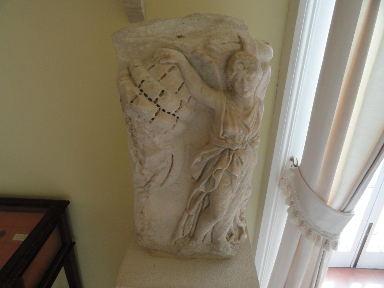 The entrance to the small Mon Repos Palace was 3 euro at that time but is defenitely worth a visit. It was built in 1928 by the English high commissionar Frederik Adams as a present for his wife. Later it came into the hands of the Greek royal family. It is still private property, but the Greek royal family lives in exile. Some of the rooms in the palace have been restored to their former glory and there are archeological artefacs exhibited, such as coins, jewelry, grave stones, pottery, small marble statues and heads, of which one is probably the image of Alexander the Great (see picture). |