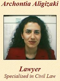 LOOKING FOR A LAWYER TO REPRESENT YOU WHEN BUYING A PROPERTY IN CRETE? Look no further! Archontia Aligizaki in Chania is the best and comes highly recommended by me and people that I know on the island of Crete. . Excellent knowledge of Greek, French and English languages. Basic knowledge of German language. Tel +30 2821 042250 / mobile: +30 69 73383690 / Send an e-mail to Archontia Aligizaki. |