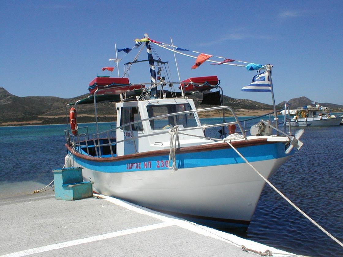 >Zie de majestueuze zee-grotten van Antiparos, maak de wandeling de heuvel op naar het heiligdom en de rest van de opgravingen en wordt vervolgens afgezet op je eigen prive-strand, wandel wat over het eiland en voel je voor een paar uurtjes als Robinson Cruso�. Kapitein Marianos en zijn houten boot de Sargos 1 zijn te vinden in het dorp Agios Georgios, op Antiparos, naast de drie zee eethuisjes aan de zee. Marianos brengt je waar je maar naartoe wilt en hij helpt je heel galant bij het uitstappen en weer aan boord komen van de boot. Als je hem zegt wanneer je weer wilt worden opgehaald dan komt hij ook op tijd! Deze excursie is zeer verschillend van alle andere (commerci�le) boot excursies, echt heel bijzonder, en ik zou zeggen: een must. Het zal een dag worden die je altijd in je herinneringen zal koesteren. Marianos is vriendelijk en sterk zijn, zijn traditionele houten boot is snel, en de zee grotten en het eiland Despotiko zijn onvergetelijk. In het hoogseizoen heeft hij een tijdschema dat is vastgesteld (denk ik) met een vertrek om 10.30 uur in de ochtend wanneer de bus van Antiparos stad aankomt in het dorp. Op andere tijden kunt je hem bellen op 0031 6973 794876. |