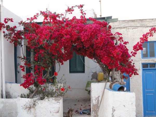 The main village of Donoussa where the ferry sails in looks inviting with a big, quiet sandy beach, but the sand is rather hard. You will find a couple of quiet beaches in the south of the island (Kendros and Livadi) and in the north (Kalotaritissa - the one we visited) but you have to be prepared to walk. There is also space for people that like to swim in the sea without their textiles on since a lot of the beaches are mixed or they are taken over by the naturists. There are no busses and you can't rent a car or a motorcycle (at least not when we wre there). There is a water tap in the village / harbor Agios Stavros with fresh natural water that you can drink (we didn't try, but stuck to the bottles as usual). We had a hard time finding a public telephone (usually in the front of a harbour, but here it was situated somewhere in the back of the village - we did not have mobile telephone yet) and the baker (in the harbour next to the restaurant). I have been told that there were some more tavernas on the island by now, so you have some more choice if you want to go out for diner. Summarized it's not too bad for having a look around. |