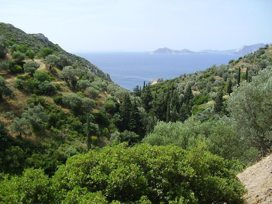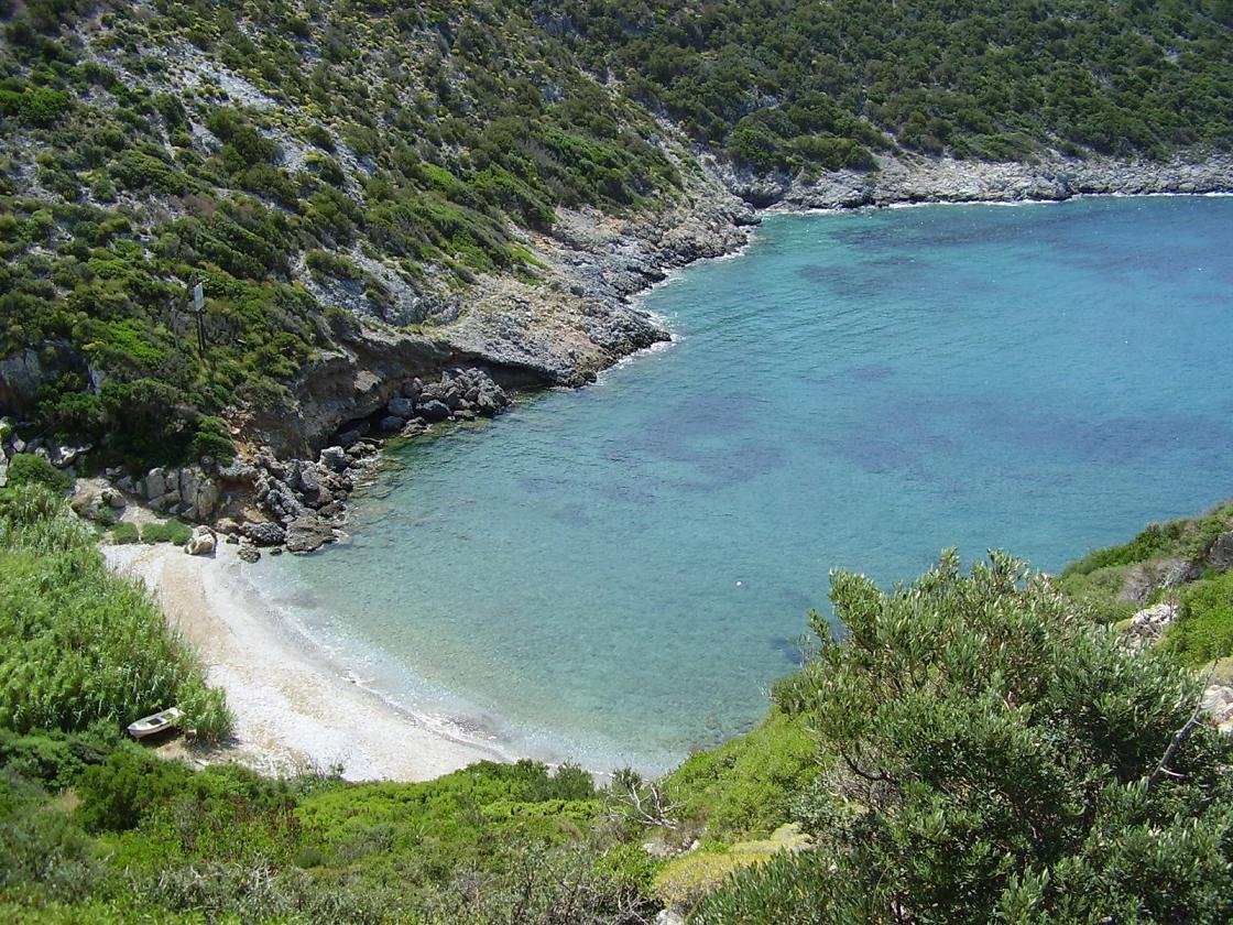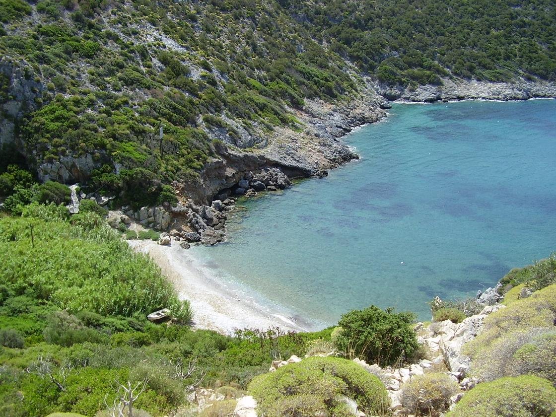 Vanaf Paleochori zijn mooie wandelroutes langs de kust met prachtige uitzichten over de natuur, de zee en diverse eilanden die voor Samos liggen, zoals de Fourni eilandengroep en het eiland Ikaria. Op heldere dagen kun je nog meer eilanden zien. Een pad leidt naar het klooster "Moni Agios Ioannis Eleimonas", maar alleen aan het begin staat het aangegeven en daarna kan je alle kanten op en gewoon verdwalen. Langs de kust zie je soms mooie kleine strandjes waar je best op zou willen gaan zitten, maar ze zijn onbereikbaar tenzij je een boot hebt of indien je een geit bent. Wij misten op een haartje het klooster (dat bleek achter de volgende bocht te liggen) maar de wandeling in dit gebied was wel erg mooi. De bovenstaande foto's van het strand met het huis met het rode dak zijn blijkbaar van het 250 meter lange strand van Agios Ioannis Eleimonas. Het is afgelegen en rustig en een optie om in naturistenstijl te zwemmen. Het schijnt dat je er wel kunt komen - maar wij zouden niet weten hoe je dat dan moest doen. Het klooster ligt vlak bij het strand en je kunt het te voet bereiken via een klein paadje - van horen zeggen. Vergeet niet een flinke hoeveelheid water mee te nemen als je besluit om hier te gaan wandelen.