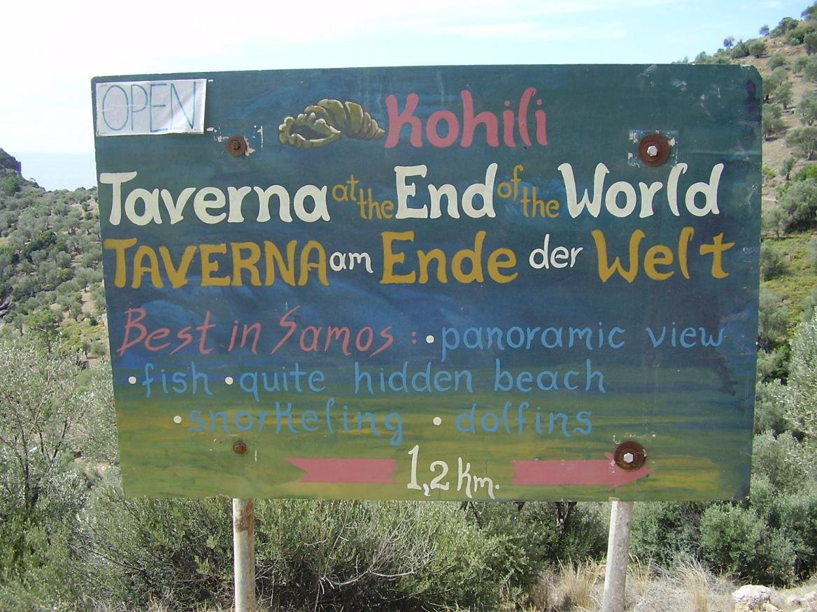 UPDATE 2012: Hi Hans, er zijn veel dingen veranders bij de taverna en aan de wegen, zoals je kunt zien aan de foto's die ik op facebook heb gezet. Ik had enkele Nederlandse mensen vandaag die kwamen lopen vanaf Limnionas, omdat de informatie op je website zegt dat de weg niet geschikt is om over te rijden, en veel Nederlandse mensen komen daarom niet eens, dus kijk eens naar de foto's en verander het dan, dank je, Andreas van de taverna The End of the World. |