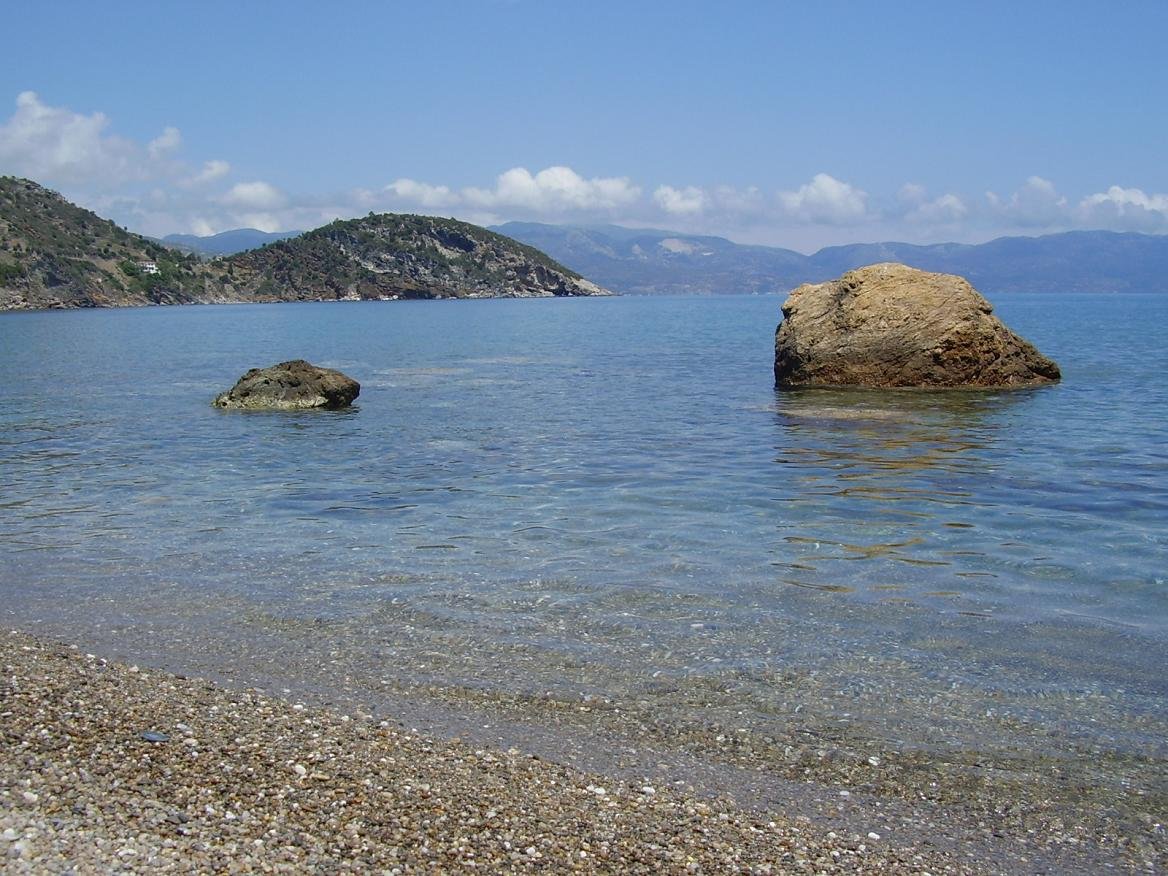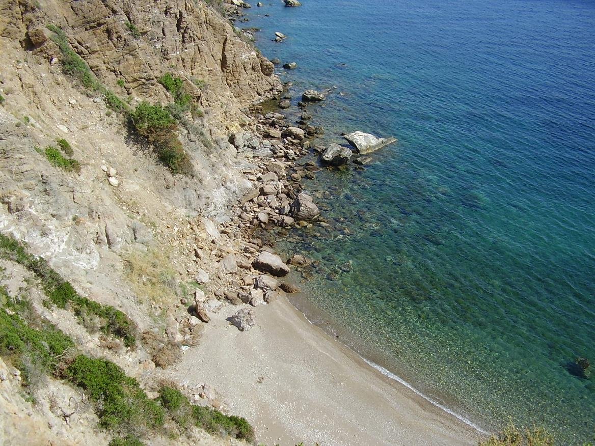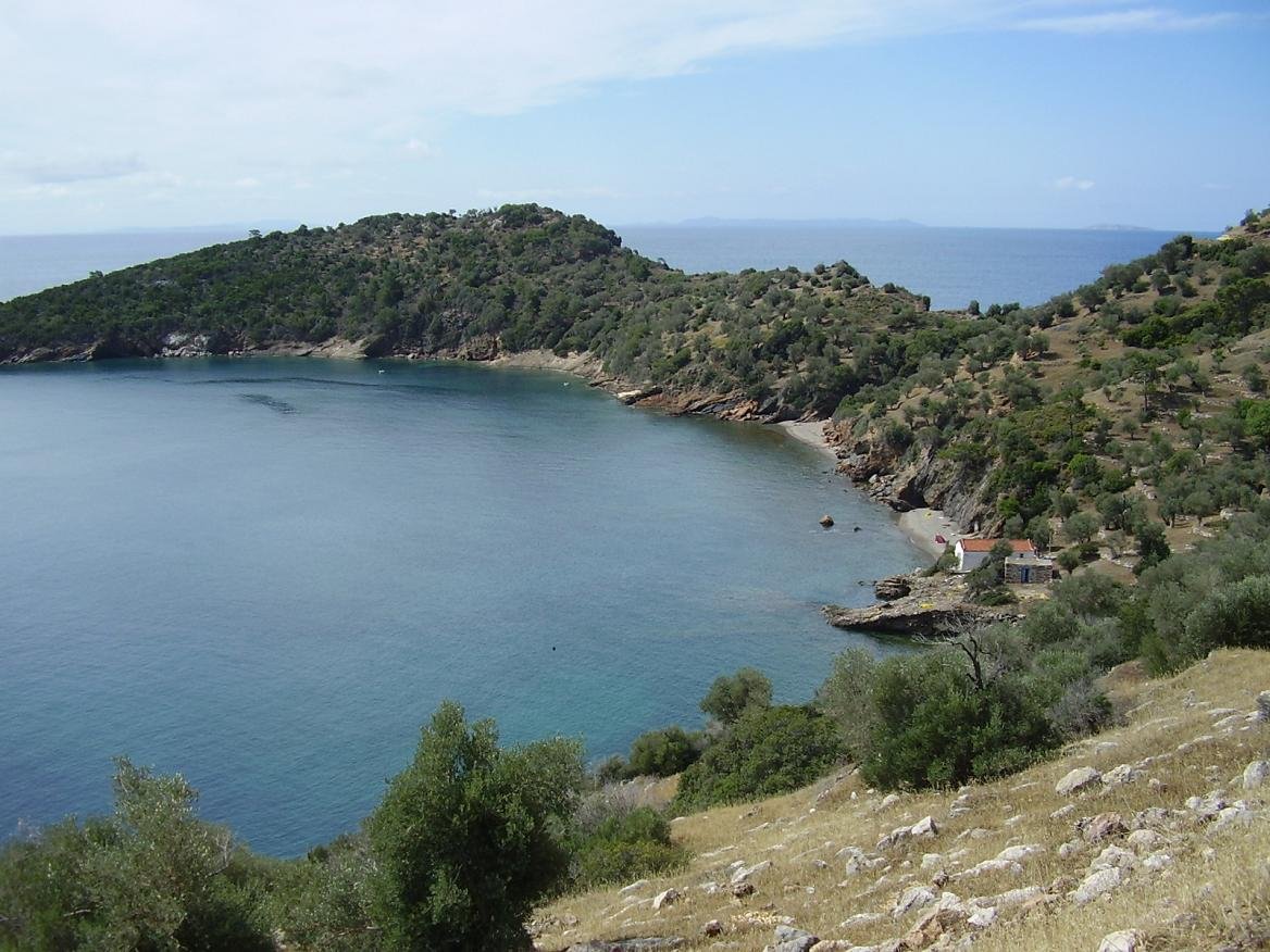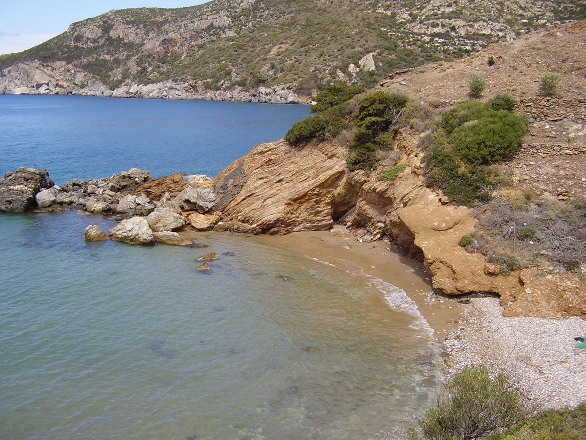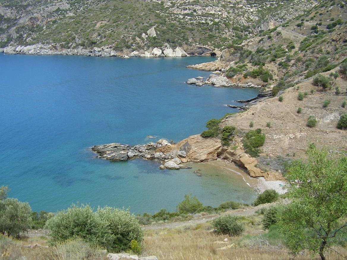 Van Limnionas leidt het pad naar de taverne "The End of The World". In de omgeving zijn er diverse kleine en afgelegen stranden die te voet kunnen worden bereikt. Voor de taverne zijn er twee kleine zandstranden die je kunt bereiken via een pad. Op rustige dagen zijn ze uitermate geschikt voor naturisten. Bij de taverne zelf is er een mooi strand (ik werd verteld dat er nu een trap naar beneden is gemaakt) en voorbij de taverne zijn er meer kleine stranden. Een deel van de stranden ziet je tijdens de wandeling in dit gebied liggen en sommige zijn alleen per boot te bereiken. Onderweg kom je de kerk van Agios Nikolaos tegen waaronder een leuk klein strand is gelegen. |