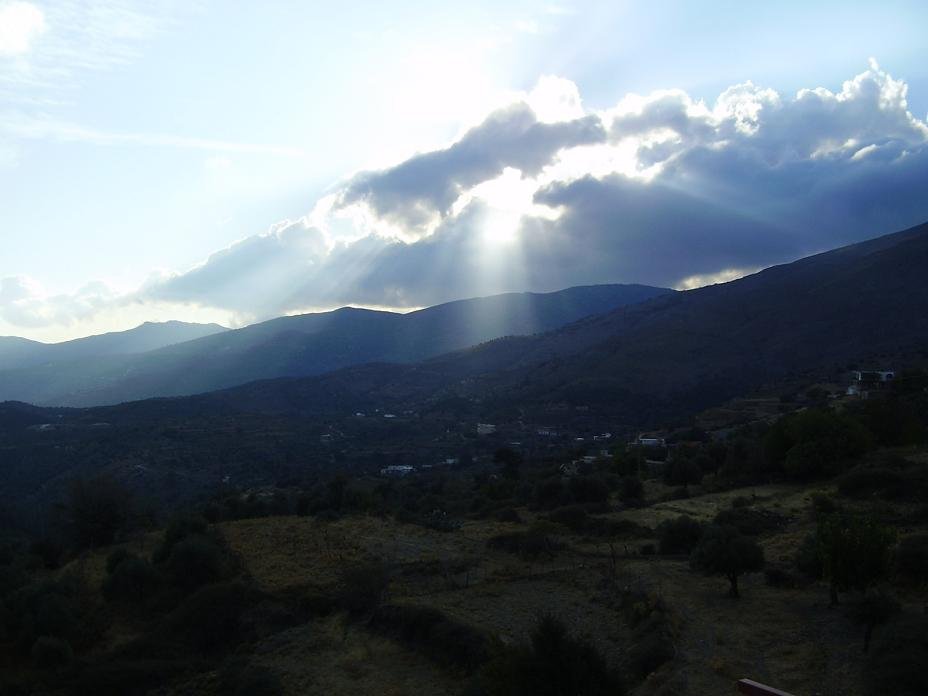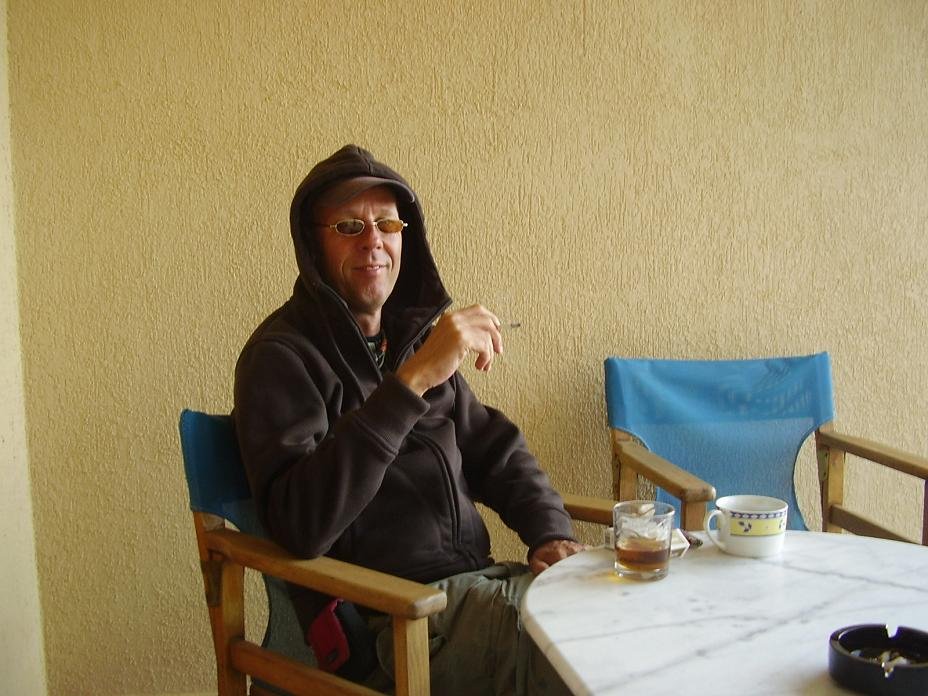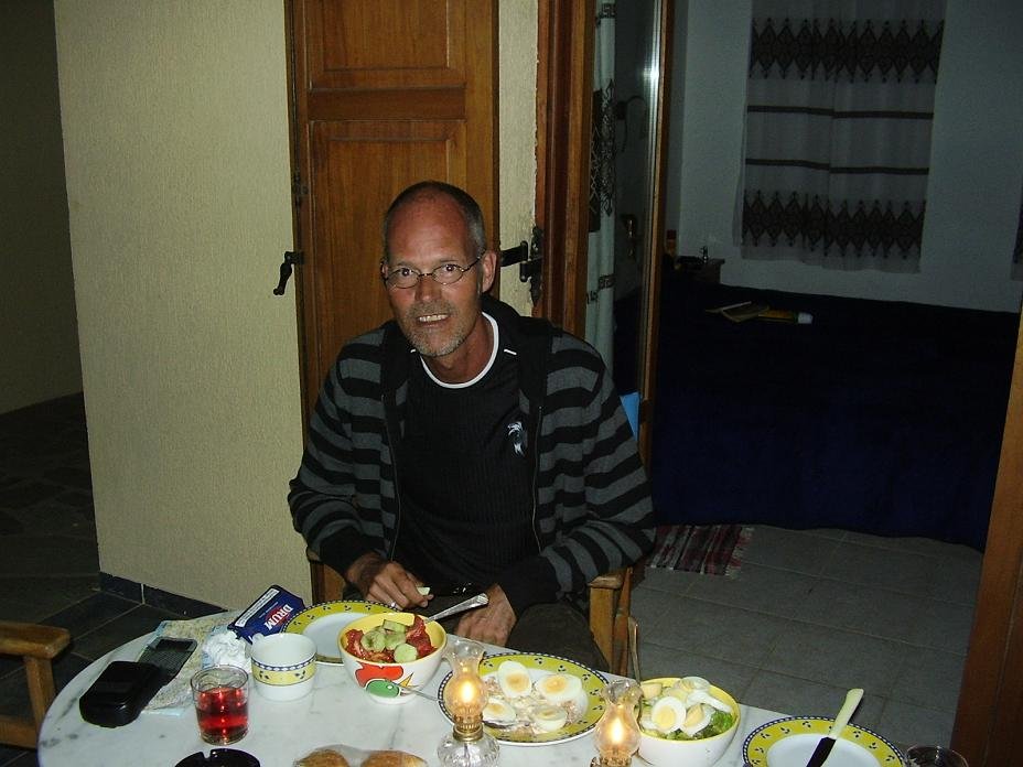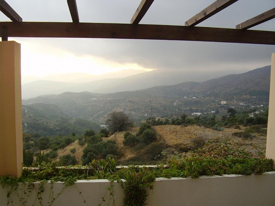 We stayed in an apartment with personality and soul, with carefully chosen curtains, beautiful bath towels and fancy bedsheets. The plates and cups and saucers also told you that the friendly lady that runs the house (her name is Marie No�lle and she speaks French, English and Dutch) has made an effort to make it a cosy place. There is a kitchen and there is enough equipment in case you want to make a meal in your apartment. We had a coffee machine too. Inside there were two large couches and a table and chairs. Outside there was a large terrace with the most amazing view over the mountains. In the distance on two places, between the mountains, you could see the Libian Sea. |