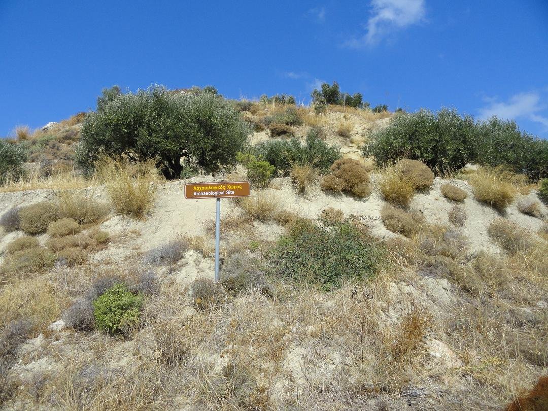 Anyone who believes that he will encounter an extensive Minoan excavation will be disappointed. We actually really only saw the sign and the hill and we walked around it and climbed it but didn't find anything. Yet there is a very small excavation. There are two tombs carved into the hill. One is still intact and the other has collapsed. Perhaps even more graves are concealed under the earth, but personally I found it, except for the fact that it was a nice walk, nevertheless disappointing, because if you put such a large sign on the side of the road you expect something more than that.
