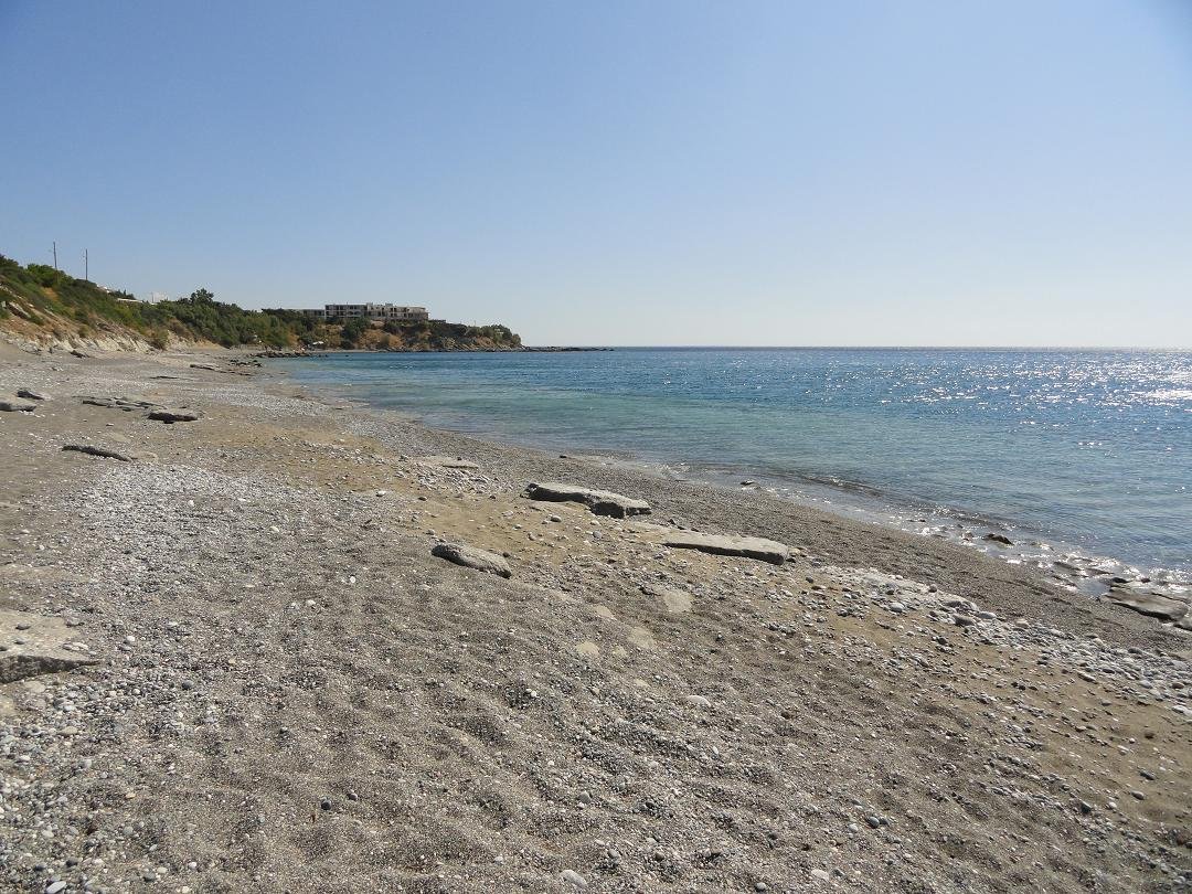 Directly to the west and within walking distance of this quiet beach with naturist area there are two other beaches. The first beach is a small but beautiful sandy beach in a protected bay. You can go there by car and park it at the Kakkos Bay Hotel where there are rooms and nice bungalows with sea view for rent. But if you walk over the cliffs from one beach to another and continue along the coast, you can see the remains of two ancient Roman fish tanks. They are carved in the rocks and there's a hole in them to let fresh seawater flow inward. If you keep walking you will automatically end up at the next beach. On this beach you will also find sunbeds and umbrellas. |