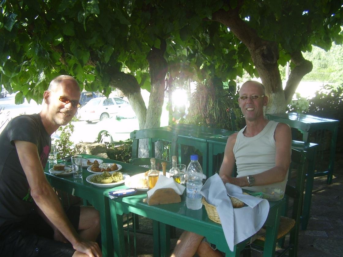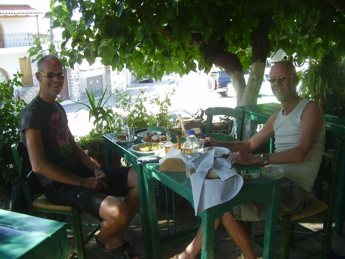 Dit is een van de twee eetgelegenheden in het dorp Gavalochori, en het is nog een hele goede ook. Het zit op een hoek vlakbij het oorlogsmonument. De taverna ziet er gezellig uit met zitjes onder de grote bomen en omgeven door potten met planten en bloemen. Het kan er best druk worden omdat het in de wijde omtrek bekend staat als een erg goed restaurant. Ze serveren er originele gerechten zoals gevulde courgette-bloemen en okra's in tomatensaus. Het brood is vers en lekker en is uit 1 stuk. Er wordt een heerlijke Illy koffie geserveerd. De ober is een jongen uit Australi� die er al drie jaar achter elkaar werkt (in 2010 was hij er ineens niet meer), en hij is heel erg vriendelijk, maar ook de andere mensen die er rondlopen zijn erg aardig. Een leuke plek om het dorpsleven mee te maken en weer eens wat anders dan sommige taverna's die alleen maar op toeristen zijn gericht. Ons oordeel: best goed - een 8,5 uit 10 |