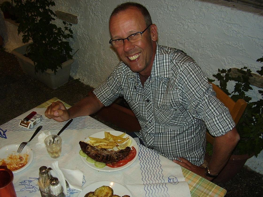 Restaurant situated in the harbourfont of Ireon near the small beach in the north east. The bread (in one piece) comes with butter and herbs and tapenade. There are quite of number of special dishes on the menu which is not a typical menu for a Greek restaurant, but with a little extra instead. We tried the flogeres (some kind of croquetes with cheese and bacon), the aubergine slices with bacon in cream sauce (called special mezes), the mexico chicken (a hot number with peppers, mushrooms and carrots) and the lamb chops. The wine is very good, the french fries soft (if you find crunchy fries in Greece write me!!), but everything looks very attractive. Our verdict: 8 out of 10 |