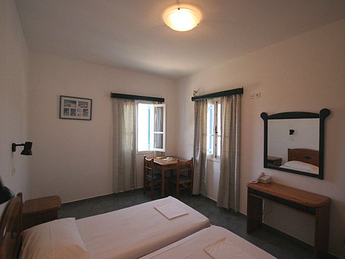 Archipelagos Hotel Apartments in Arkasa on Karpathos lies directly on the sea and has large comfortable and tastefully decorated rooms suitable for 2 to 6 people. It is a small complex with nine rooms. The beach resort Arkasa is located in the southwest of the island opposite the island of Kasos and it is about a 10 minutes drive from the port. The apartments have a kitchen and there is air conditioning. There are rooms with sea view. The hotel is located in a large garden. There is a reception and parking space. The hotel offers a possibility for breakfast, which is optional. Close to the Archipelagos Hotel are restaurants, shops, a butcher, a greengrocer, a minimarket, a car rental a hair dresser and bars. Check availabilities and prices & book Archipelagos Apartments on Karpathos - click here. |