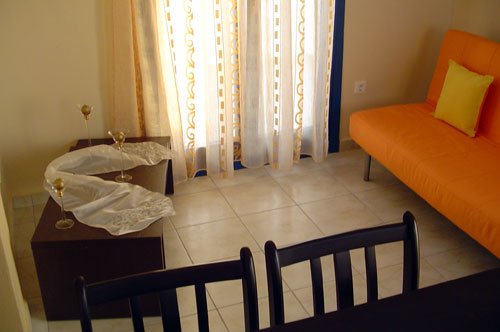 The Studio complex of Seaside is small, with only six studios in total, which are suitable for 2, 3 or 4 people. They are situated at a 1 kilometer distance of the village of Arkasa and at 80 meter distance of the beach of Saint Nicolas, which has been chosen as one of the cleanest beaches in the whole of Greece. At the beach you find restaurants and shops and there is a mini market. The bus stop is at a 3 minutes walk away from the building. All the studios have a tv and there is a kitchenette with a fridge and cooking facilities / oven. They are set in a beautiful garden. Seaside has many yearly returning visitors and that's not just because the studios are nice, but also because the prices are very reasonable (you can call them cheap). The owner has got a name as if she just stepped out of a fairy tale. Her name is Zaharoula Zouloufou and she is very fast in responding to e-mails. Tip: cheap prices and with a very friendly owner. Check availabilities and prices & book Seaside Studios on Karpathos - click here. |