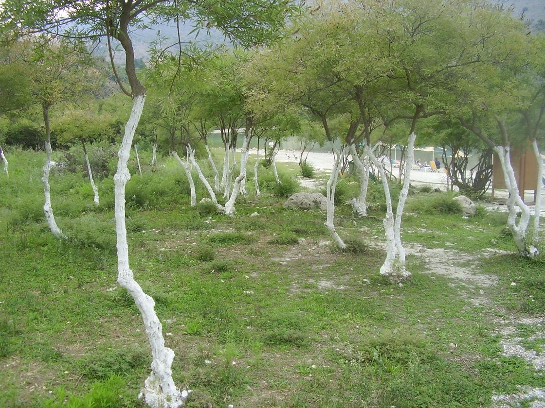 Kournas Lake is about one and a half kilometer in diameter and at the southern end it is up to 45 meters in depth. There are special birds floating in the water, big orange fish swimming around, and it seems trees are growing from the bottom of the lake (when the water is really high). On my visit we even saw a turtle swimming around. For the people that love it enough to wanna go and explore some more on the lake it's possible to rent a water bike (cost: 7 euro in may 2003 and prices are steady - visited again in 2009). There's some sort of a beach and a lot of olive trees and other vegetation. It is a special place for wildlife including for birds. You can even swim in this lake if you like. In my point of view Lake Kournas is definitely one of those special unexpected surprises you sometimes can find on a Greek island. |