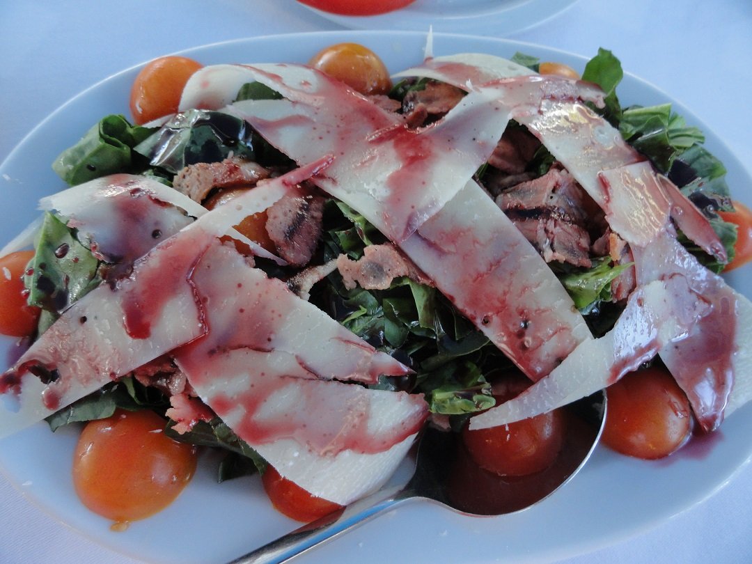Ligo Krasi Ligo Thalassi is ook een van de restaurants aan de boulevard van Almirida. We bestellen er visgerechten (garnalen), vleesgerechten (lam uit de oven) en een salade met avocado. Het eten is er niet slecht maar de witte wijn is bijvoorbeeld niet koud en de avocado's zijn niet rijp. Ons oordeel: een 7,5 uit 10 |