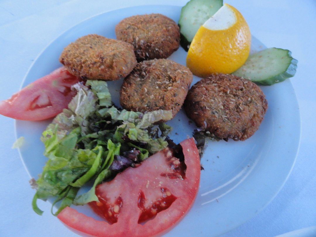 Fish Taverna Thalami is een van de restaurants in Almyrida, die direct aan de zee is gelegen. Wij proberen de potato flavour (aardappelballetjes gevuld met kaas), de dorado (een vis) en de smoked salmon salade. De huiswijn is droog en een beetje zurig, maar wel goed. Het eten smaakt eigenlijk allemaal fantastisch, dus geen enkele klacht. Het brood wordt uitgeserveerd met een olijventapenade en knoflookboter. Ons oordeel: een 9 uit 10 |