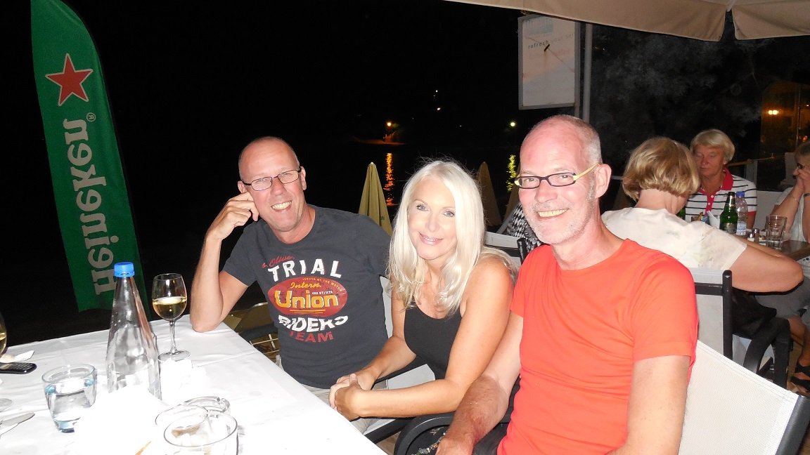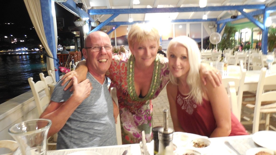 Een restaurant met heel veel namen waar we een flink aantal keren hebben gegeten. Volgens mij weten ze zelf ook niet meer hoe ze heten, maar het is een goed restaurant. De ros� wordt geserveerd in een leuk aardenwerken kannetje en de glazen zijn mooi. Het meisje dat er werkt schenkt de eerste ros� in onze glazen en ze biedt aan om een foto van ons twee te maken. Het brood is warm en komt uit de oven, en wordt geserveerd met tomatentapenade en knoflookboter. Ik bestel een schotel met van alles een beetje, een "Greek plate", goedkoop en met veel lekkere dingetjes om uit te kiezen. Het smaakt erg goed. Het restaurant heeft een beetje stijl (damasten tafellakens in plaats van plastic), met een goede service en eigenlijk is het best goedkoop. We hebben hier vaak gegeten en altijd zonder klachten. Ook leuk vanwege de ontbijtjes waar je uit kunt kiezen. Ons oordeel: een 9 uit 10 |