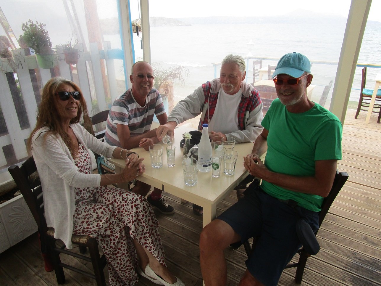 Deze taverna zit direct naast de grote parkeerplaats in het dorp Makrigialos, aan de linker kant als je richting de zee staat. Er is geen uitgebreide kaart maar het is er wel spotgoedkoop en lekker. Wij bestellen er de fried courgettes, tzatziki, twee maal de sole fish, een mix fish, chicken filet en green beans. Dat alles natuurlijk vergezeld van een karaf witte wijn. |